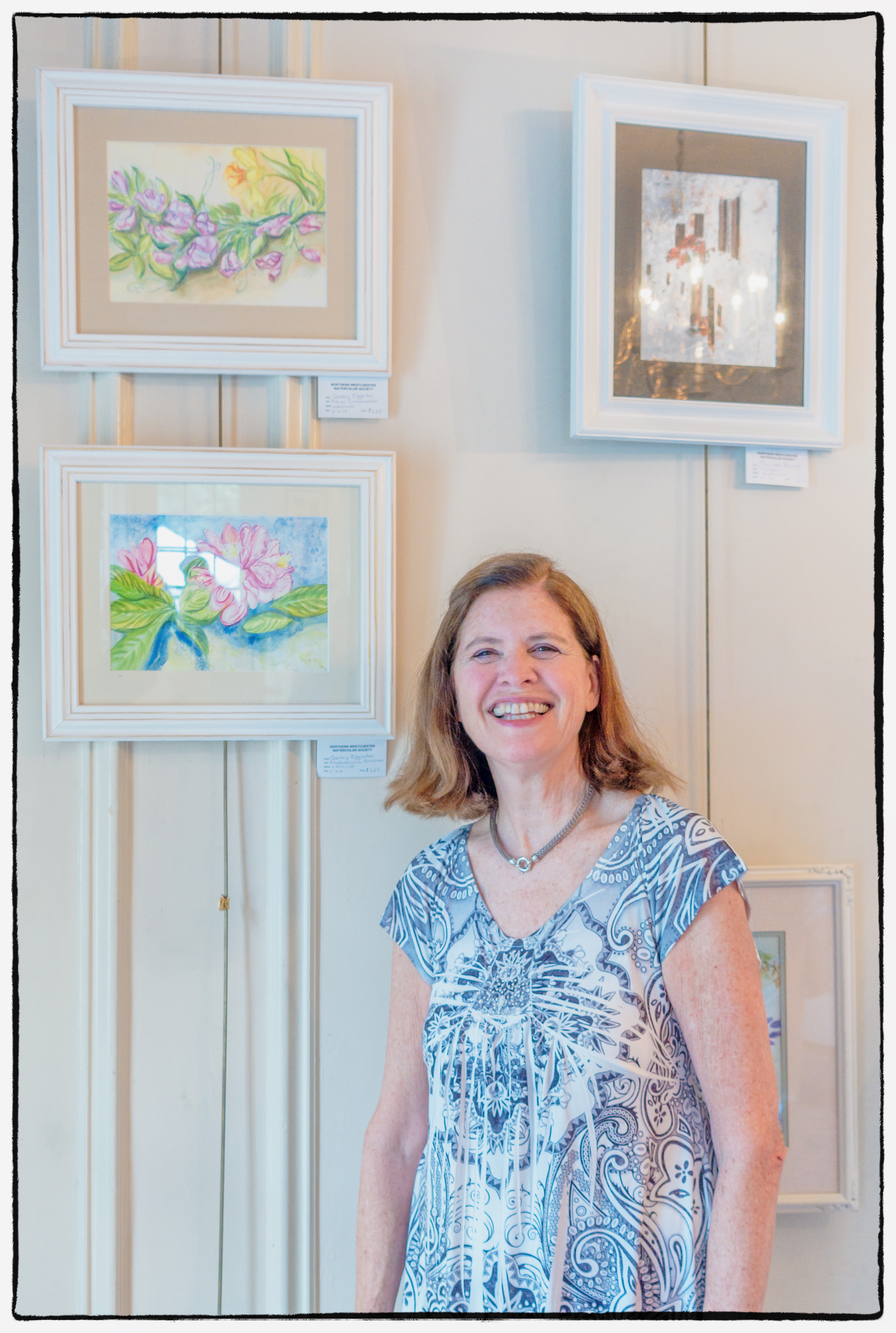 In the middle of August we went to a water color exhibition at Muscoot Farm. Above, one of the artists with some of her work on the wall behind. She also happens to be one of my wife’s friends. We bought one of her paintings: a landscape featuring a lake scene.