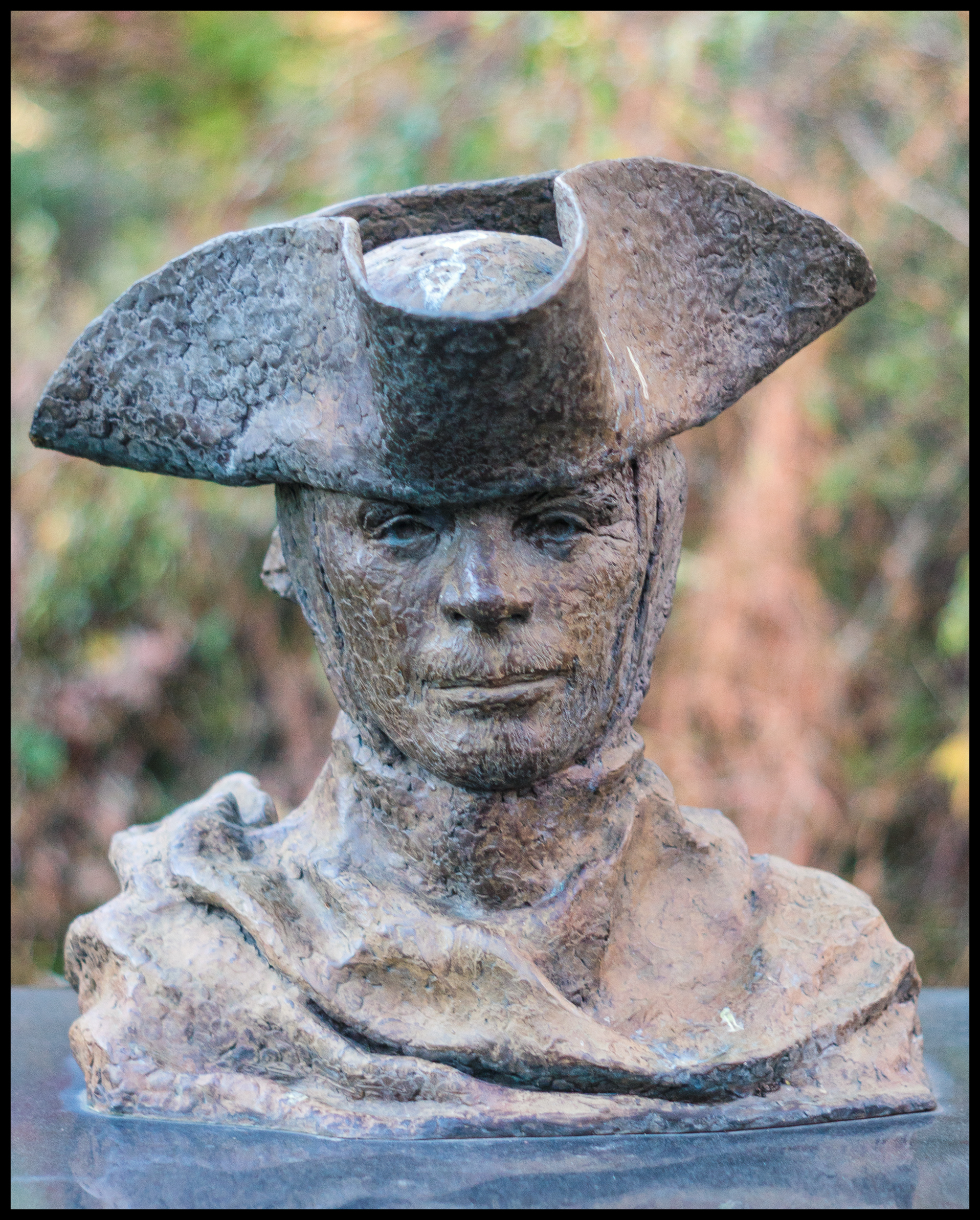 The first of eleven busts, which comes into view, is dedicated to soldiers of the American Revolution. It portrays a worn serviceman who is the representative of our nation’s founding war for independence. He is wearing the common rugged winter uniform that most of the soldiers put together in order to keep warm. The American Revolution began as a simple request by American colonists for representation when being taxed, yet the British responded by forcing further taxes and restrictions on the colonies, resulting in a revolution. Through the sacrifices of many brave colonial volunteers, a new nation of freedom was born. Across from this memorial is a red maple and plaque dedicated to the late U.S. Congressman Hamilton Fish Jr., a good friend to all veterans, who has been honored with lasting place on this trail.