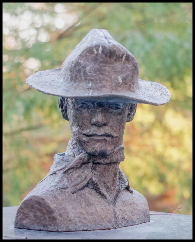 The next monument on the trail is in honor of those who served in the Spanish American War. This war fought for control over Cuba and the Philippines out of fear of a Spanish invasion of the United States and to create a hold on South America. The war ignited after the sinking of the battleship Maine, and with the help of the media, the United States gave Spain the ultimatum to either leave Latin America or face retaliation. Spain and the United States declared war in 1898, beginning ten weeks of one sided victories for the Americans, ultimately annihilating the Spanish troops in South America. Once peace had been declared, the United States gained temporary control over Cuba, as well as indefinite control over Guam, Puerto Rico and the Philippines. The serviceman resembles a member of the 1st United States Volunteer Cavalry, a unit later led by future president Theodore Roosevelt that was nicknamed “The Rough Riders”.