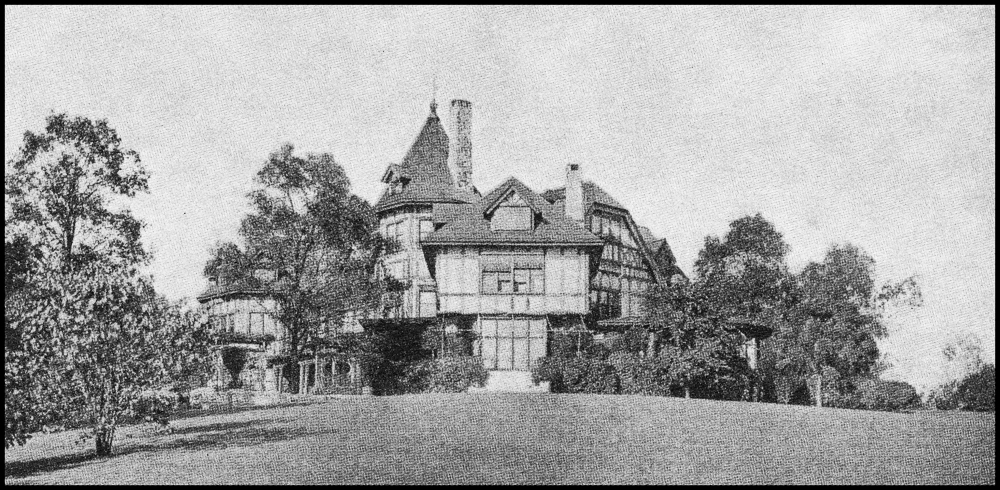 In 1896, V. (for Valentine) Everit Macy bought several large tracts of land just north and west of Walter Law’s Briarcliff Farms. Macy, then in his mid-twenties, was the son of an official of the Standard Oil Company, a descendant of prosperous Nantucket whalers, and nephew of a founder of R.H. Macy & Company. He and his bride, Edith Carpenter, set up housekeeping in their newly built Tudor-style stone and stucco mansion set on the highest hill of their estate, overlooking the Hudson. They named it Chilmark, after the Macy family’s ancestral home in England. The Macy’s property, added to over the following quarter of a century, amounted to some 300 acres bounded, roughly, by Old Briarcliff and Pleasantville roads on the east, Croton Avenue to the north and Holbrook and Scarborough roads on the south and west, with some lots on its western border within the village of Ossining. The old gate house, now missing its porte-cochere, still stands at the corner of Holbrook and Scarborough roads. The mansion was surrounded by gently sloping lawns planted with shade trees and shrubbery, meadows and woodlands. Great stone barns housed Guernsey cows, givers of prize winning milk, and Hampshire Down sheep. There was a greenhouse for the gardens, a carriage house with apartments over it for the help, a chicken house, a stable of spirited ponies, a polo field (the Holbrook School Football field), squash courts, a swimming pool, two tennis courts and a small but challenging (par 27) nine-hole golf course.