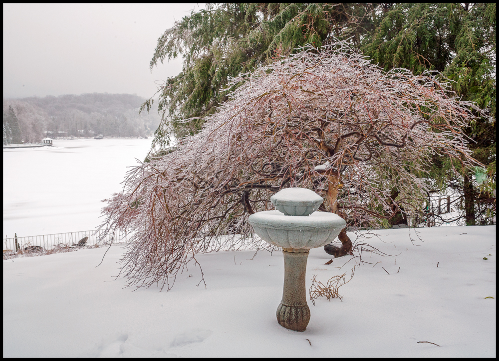 We did, however, get quite a lot of ice – here seen on the branches of our Japanese maple.