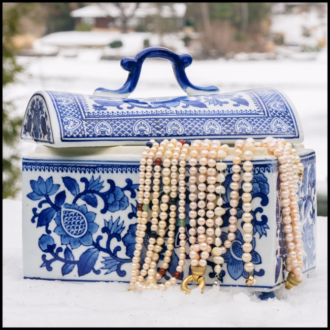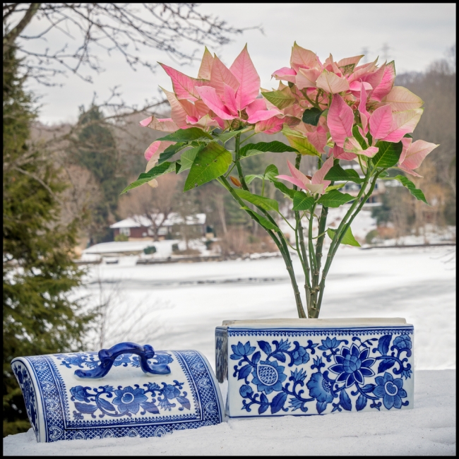 Some more of my wife’s blue and white pieces. She needed to add some content to the Facebook group devoted to blue and white china that she created and administers. We were tired of the same old indoor locations so we decided to go outside into the snow.