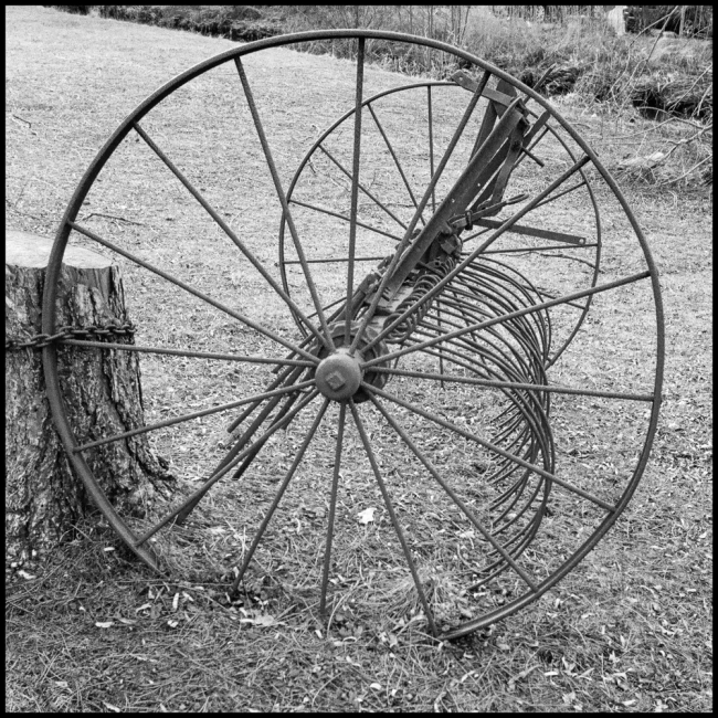 A small stream runs through Mount Kisco and crosses under West Main Street near the Native American Statue. I’ve no idea whether it has a name, but I’m guessing it’s a tributary of the Kisco River. On either side of the stream is an area of green space and it’s there that I came across this piece of equipment. I have no idea whether it serves a function (e.g. in maintenance of the grass) or whether it’s purely decorative. Whichever it is the town is clearly afraid that it might be stolen and have chained it to a nearby tree stump.