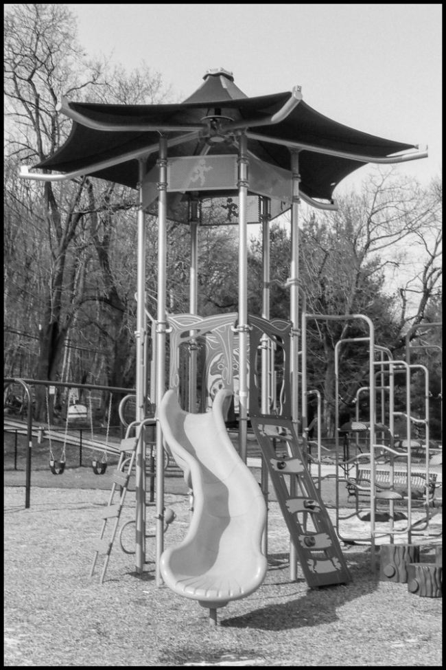 March 8, 2019 by Howard Dale New playground slide in Law Park in Briarcliff Manor. It’s new because the old equipment was destroyed or seriously damaged in a storm last year. Taken with a Minolta Hi-Matic 9.