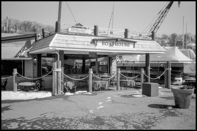 We recently went for lunch to The Boathouse, a small but pleasant restaurant on the Hudson River waterfront in Ossining, NY. It has some terrific views. In summer it has outdoor seating areas, but when we went it was still cold (you can see from the pictures that there was still snow and ice around) so we had to stay indoors.