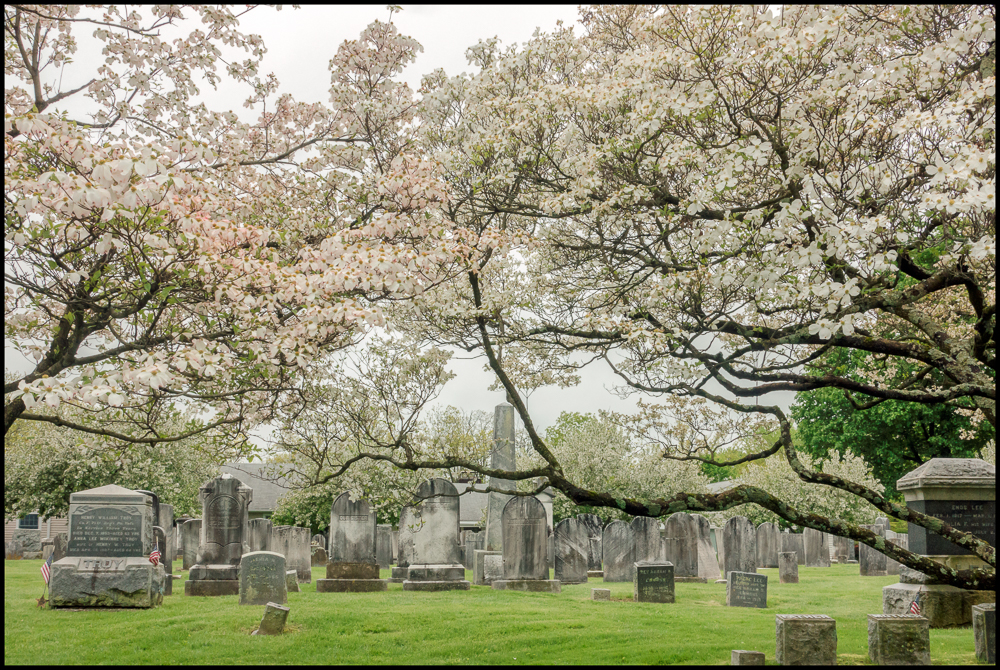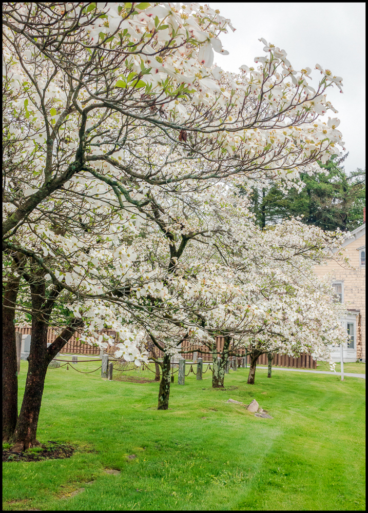 Our first stop was at cemetery of the First Presbyterian Church of Yorktown where there are two monuments, and where some of those who died in the battle are buried. Above and below a couple of views of the cemetery and it’s spectacular flowering trees.
