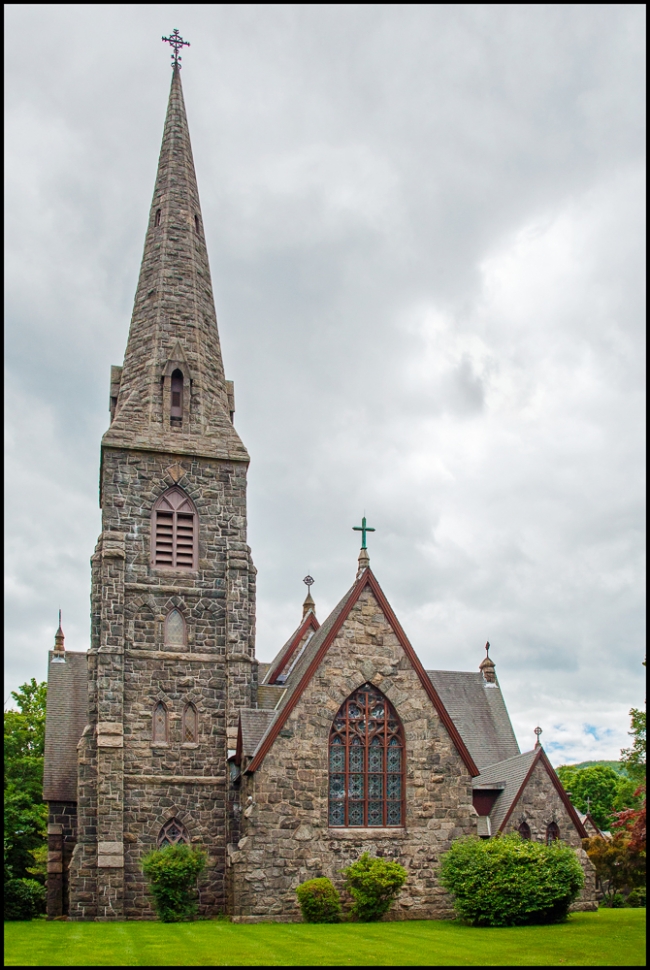 Architect and vestry member George Edward Harney was instructed to design the second church of St. Mary-in-the-Highlands. Building began in late 1867 under the direction of Sylvanus Ferris, “a clever builder of Cold Spring,” and was completed the following year. Constructed of gray granite taken as a donation from the estate of F.P. James, the church was built in cruciform shape. Its length is 100 feet and its breadth at the transepts is 68 feet; the roof is 40 feet high and is made of timber. The church spire rises to a height of 128 feet above the ground. Situated the top of the hill the church has a commanding view overlooking the village and river. The consecration of the church took place in a ceremony led by Bishop Horatio Potter on July 23, 1869. On that day the great bell in the tower, weighing 1,100 pounds, rang out for the first time, clearly and easily heard over the countryside.