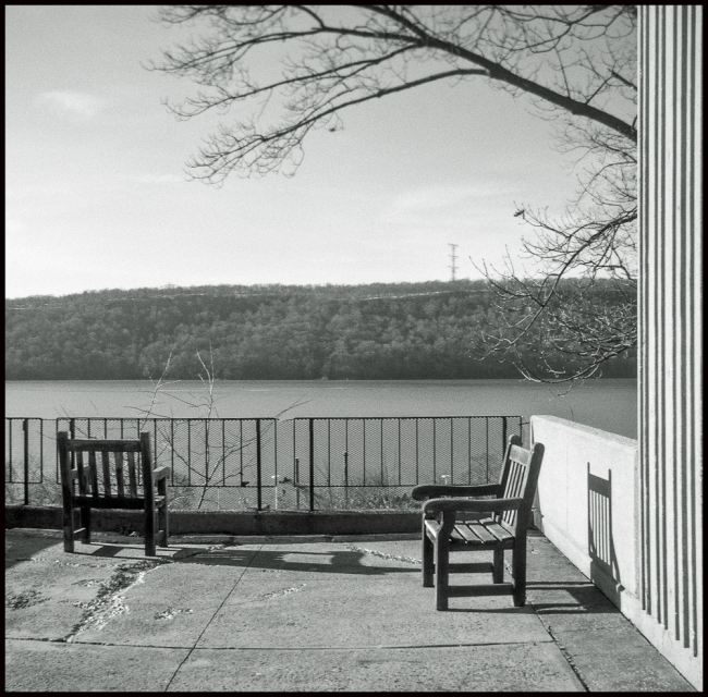 View from the Hudson River Museum across the Hudson to the Palisades.