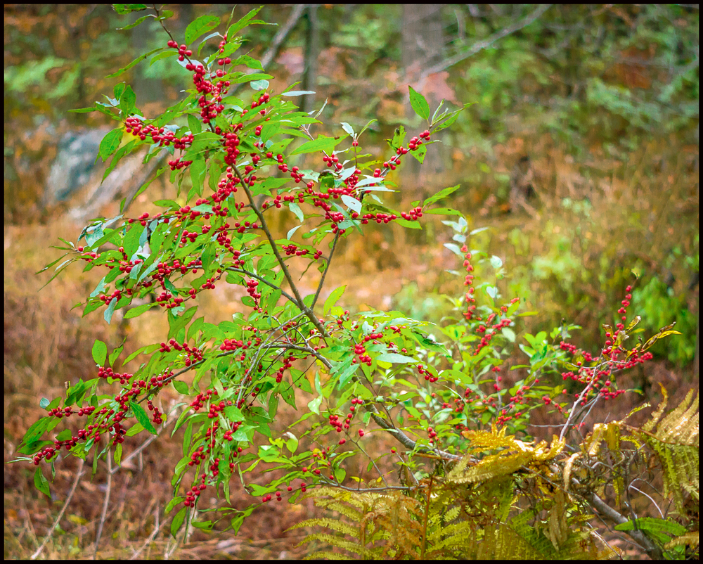 In addition to the people, horses, chipmunks, squirrels, turtles etc. I also came across these attractive, brightly colored berries – most welcome as I post this as it’s now winter and there’s very little color other than the blue jays and cardinals that from time to time flash past our window.