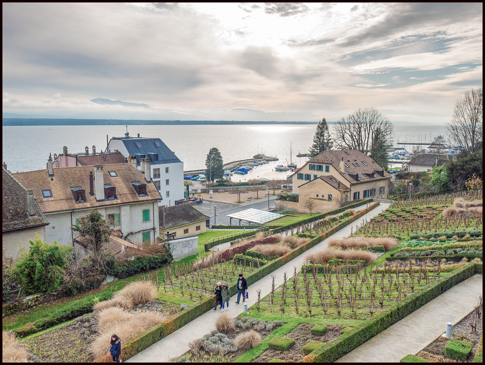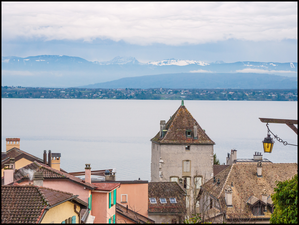 October 22, 2020 by Howard Dale Looking out over Lake Geneva/Lac Leman from the terrace in front of the castle. You can just about make out the beginnings of the Alps across the lake. Taken with a Sony RX100 M3.