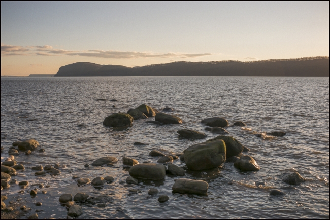 Rocks in the Hudson. Looking vaguely south towards Hook Mountain.