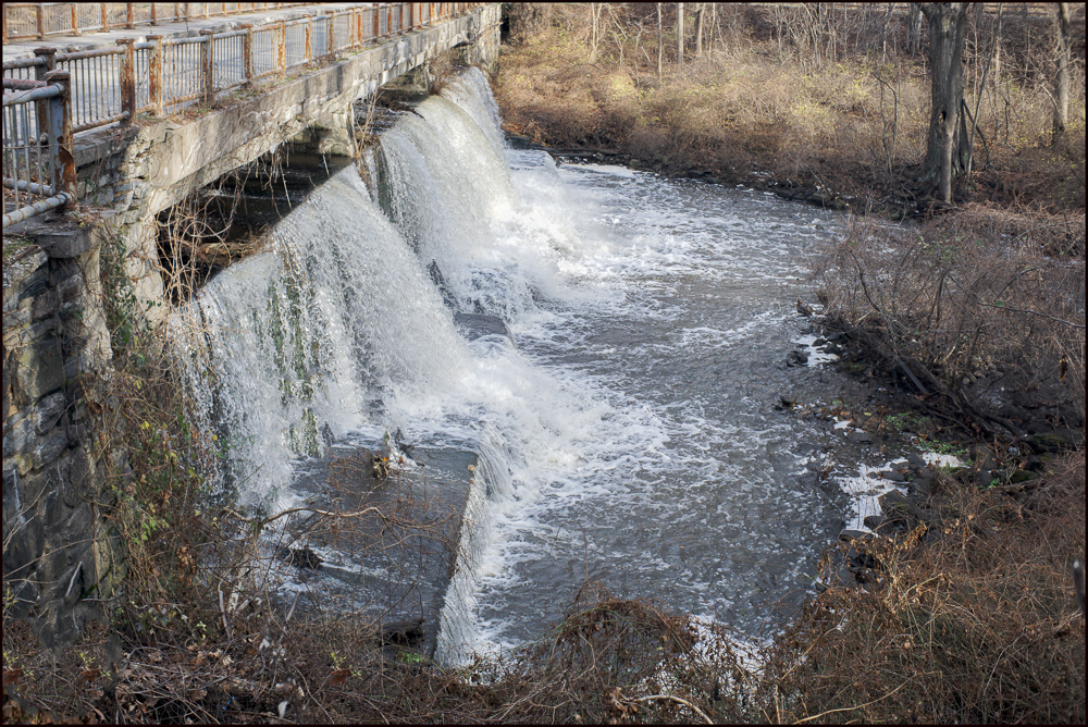 The preceding post mentioned the park’s waterfall. It’s at the south end of the lake and is really quite impressive. Here are a couple of views, the first (above) taken from the side and the second (below) taken from the bridge over the waterfall with the water tumbling down below.