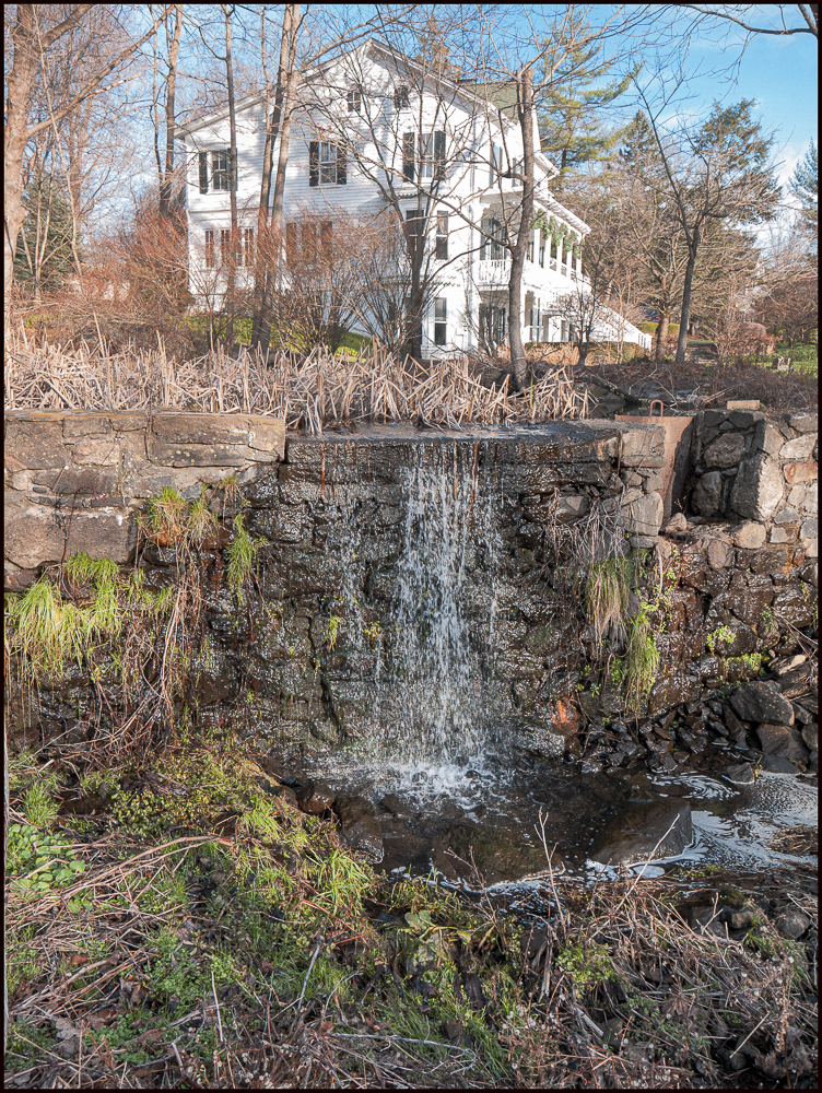 This house at 33 Sleepy Hollow Road, Briarcliff Manor, NY is possibly my favorite of all of the houses in our neighborhood. I like the raised porch with the steps going up to it and particularly the way Caney Brook runs either next to or through the property and then over this stone wall.