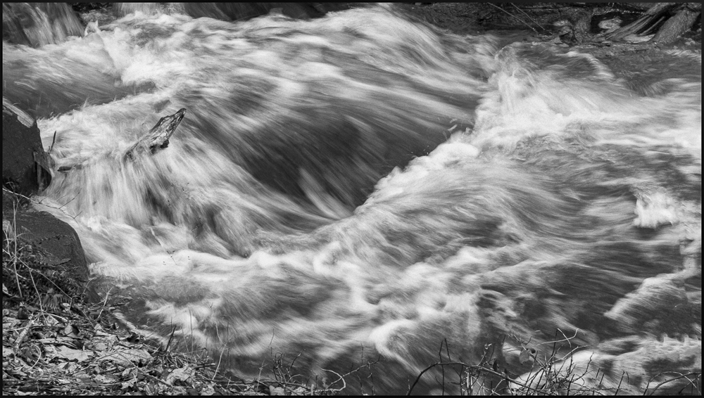 We’ve had a lot of rain lately. That, combined with one foot plus of snow melting has meant that the local streams and rivers are high and flowing quickly. I tried to capture this sense of movement.