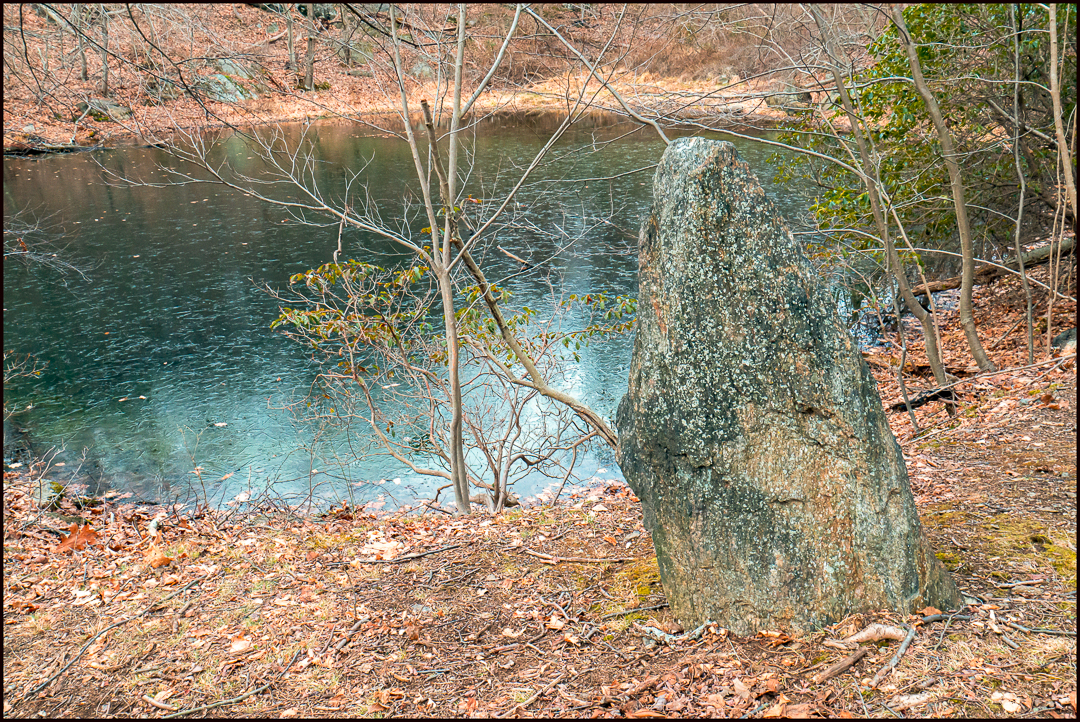 There are a number of ways down to the pool. The one I chose went by a small monolith.