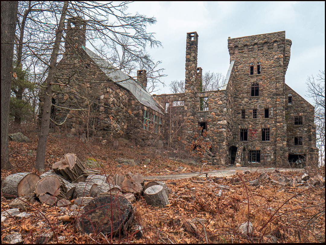 Since the days of the Dutch the area where I live has included the sites of many magnificent homes. Most no longer exist. Some have been modified for other purposes and a few remain as abandoned ruins like this one. The owner was a wealthy business man who established a well-known company dedicated to specialized, high-end, hunting, fishing, and camping equipment and clothing. After serving in the army during World War I he bought property in Westchester County, NY. The name he gave to the estate was an acronym of the first letters of the childrens’ names (and curiously also an acronym of my name too). The mansion is a large building with a steel skeleton and granite and fieldstone façade.