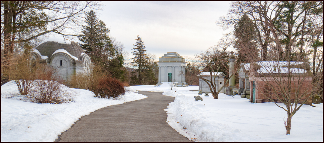 The large mausoleum in the center is that of William Rockefeller, Jr. “William Avery Rockefeller Jr. (May 31, 1841 – June 24, 1922) was an American businessman and financier. Rockefeller was a co-founder of Standard Oil along with his elder brother John Davison Rockefeller. He helped to build up the National City Bank of New York, which became Citigroup. He was also part owner of Anaconda Copper Company, which was the fourth-largest company in the world in the late 1920s. He was a prominent member of the Rockefeller family.(Wikipedia).