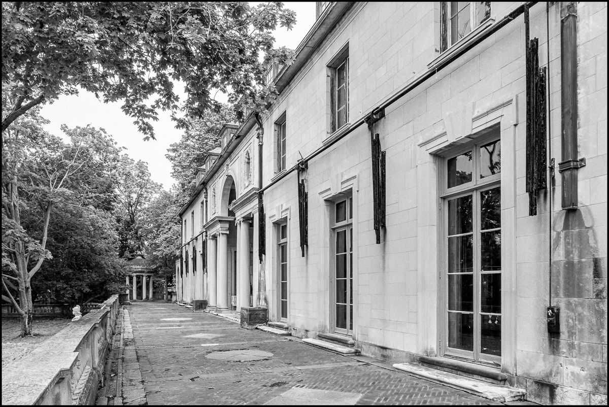 The west facade faces the Hudson River. In its day it must have been quite spectacular. Unfortunately, over time trees have grown up, partially obscuring the view.