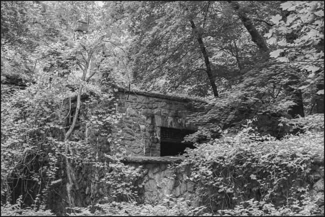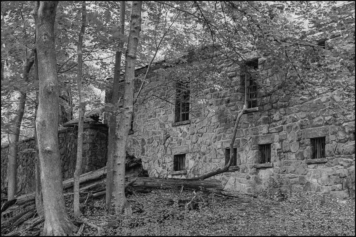 I came across these overgrown, ruined buildings while walking along the Old Croton Aqueduct Trail. The bars make them look something like a jail, but I don’t suppose they were. Bars can, of course be used to keep people out too. Maybe something valuable was once kept inside. Judging from their location they are in some way connected with the Lenoir Preserve or one of the mansions (Lenoir Mansion, Ardenwold) that stand/stood there.