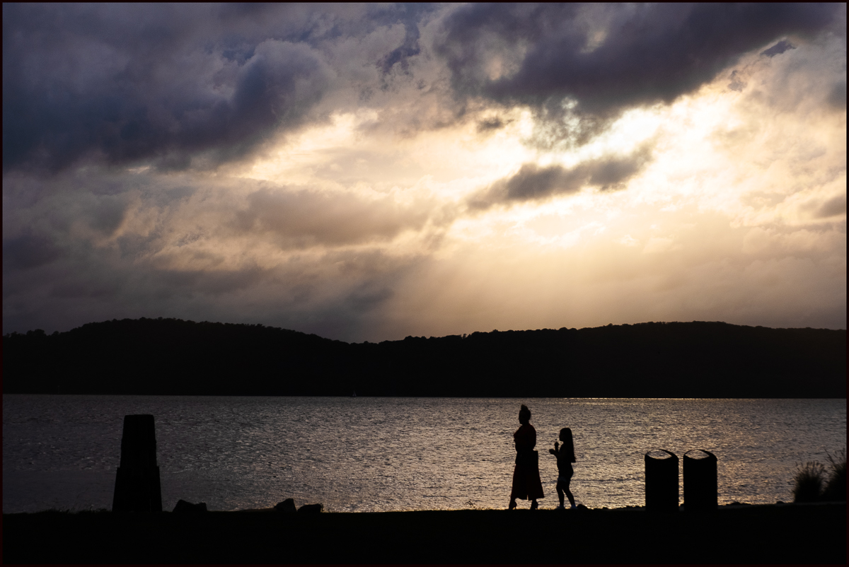 My brother-in-law had been visiting for the past couple of weeks and it was the last day before he left for greener pastures. So we decided to go for a meal out at 3 Westerley, a nice restaurant by the Hudson River in Ossining, NY. We sat outside and while we were eating I noticed these spectacular clouds, with the sun peeping through from time to time. I lined up my composition and after that there was nothing much to do except to wait for interesting light and, with a little luck, for someone to pass by.