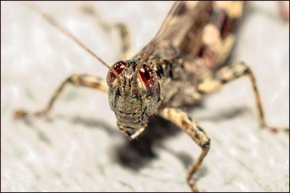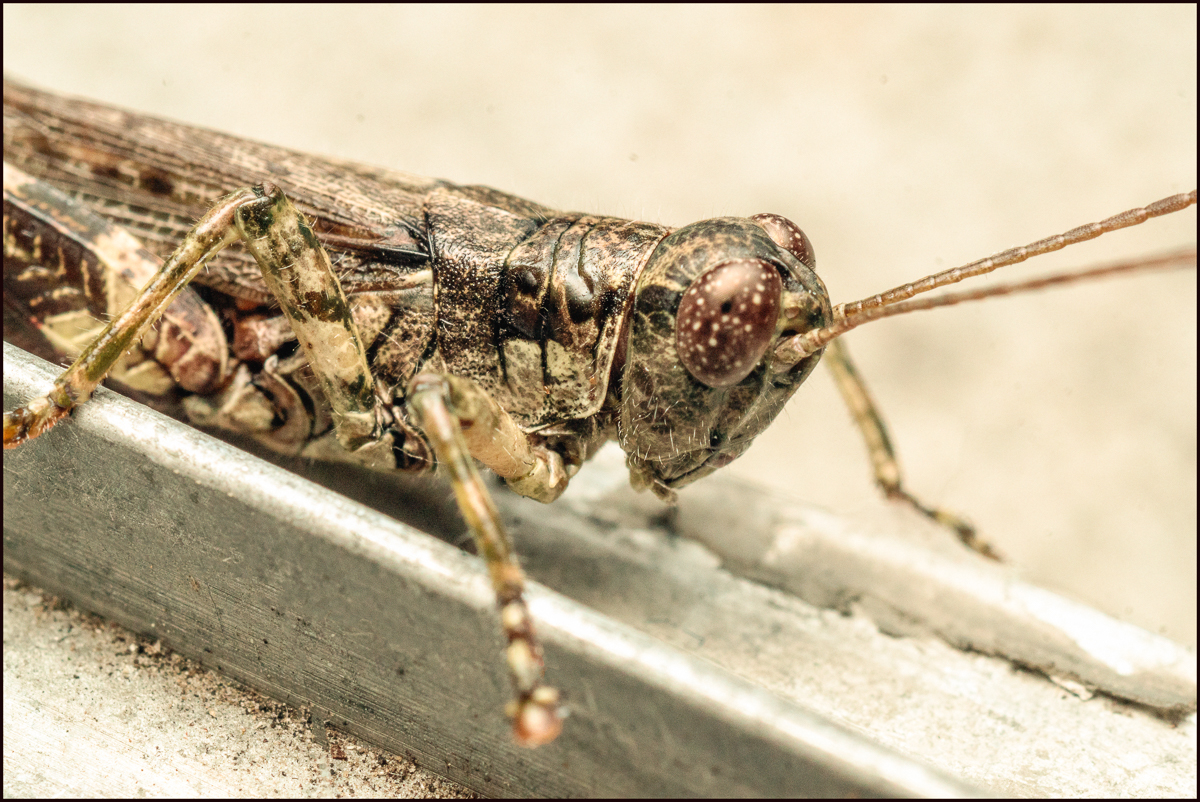 I didn’t even have to move out of my bedroom for this one when this guy flew in the other evening. I believe it’s a Grizzly Locust: a type of grasshopper, usually found among the trees, pine trees preferably. The Grizzly Locust may come to lights, and it sometimes seen on wood siding and fences in areas near forests and pine trees, the kind of habitat where females are likely to lay fertilized eggs. They are active from mid-summer through autumn.