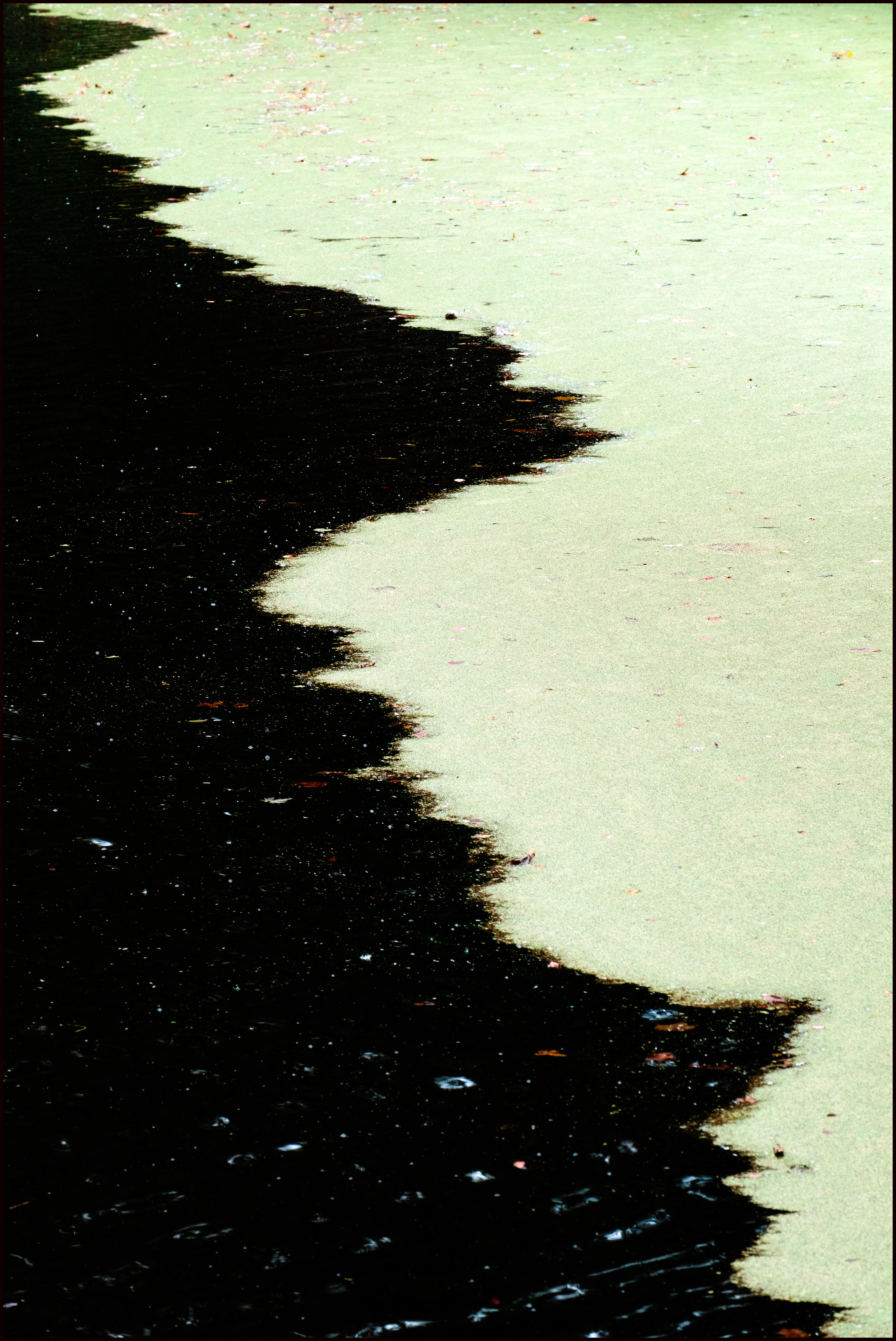 October 24, 2021 by Howard Dale Spotted this very clear dividing line between the light green of the pondweed and the much darker water of a nearby pond. Taken with a Fuji X-E3 and Fuji XF 55-200mm f3.5-4.8 R LM OIS.
