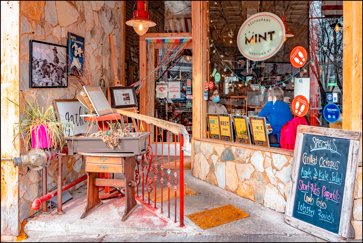I can now reveal the reason for my short detour down Main Street: I was hungry and there are a number of nice restaurants along Main Street. The one I chose is called Mint. It’s a Mediterranean Restaurant with good food and a pleasant ambiance, which describes itself as “a gourmet shop and restaurant”. Before the restaurant was added the owner had an excellent gourmet cheese shop almost directly opposite on Main Street. The legacy of this shop continues in the present location with a gourmet food section in front and the restaurant to the rear. A falafel sandwich, salad and a beer and I was feeling much better.
