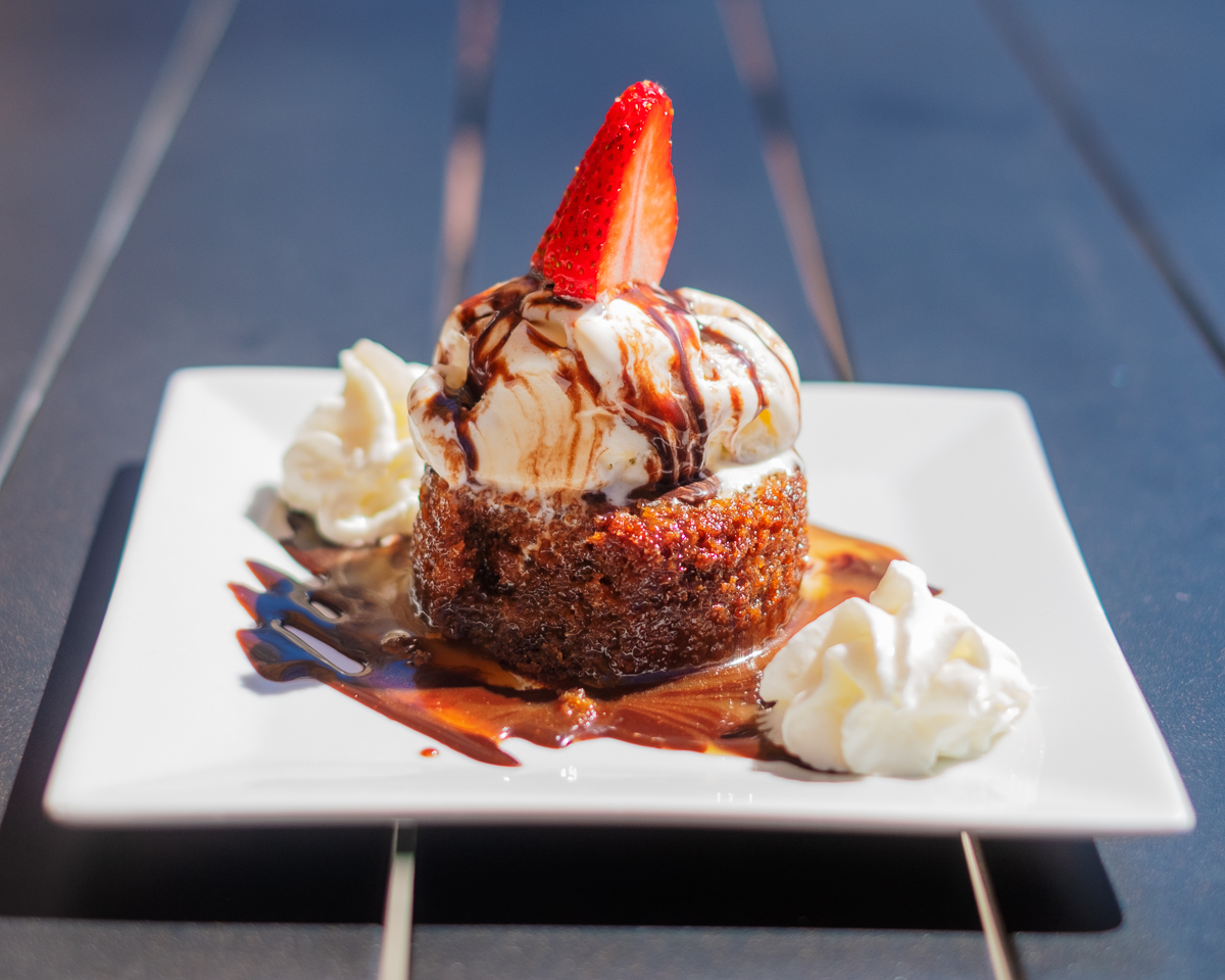 I was in Briarcliff Manor village the other day when I noticed that one of my favorite lunchtime haunts had its tables back outside. Today was a very pleasant day: sunny, but not too hot so I decided to pop over and have a bite to eat. I had a Greek salad and afterwards decided to have some dessert. I asked the server what they had for dessert and he mentioned carrot cake, cheese cake, tiramisu etc. But then he also said that there was something else, but he couldn’t quite remember the name. Off he went returning with a dessert menu, which he handed to me. Imagine my surprise when I saw that the mystery item was Sticky Toffee Pudding.