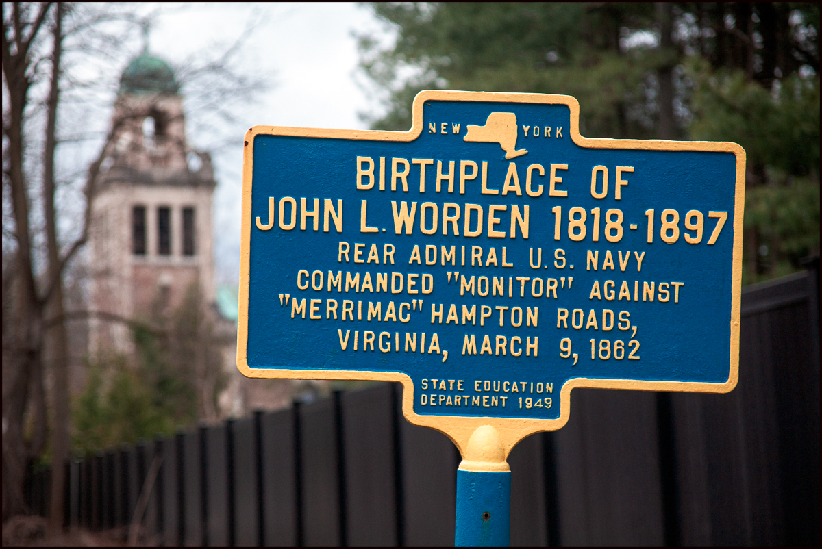 Historical Marker on Route 9, Scarborough Presbyterian Church in the background. For more on The Battle of the Hampton Roads see here. It was significant in the it was the first battle between two ironclad warships. The Union ship was the USS Monitor. The Confederate ship was the CSS Virginia. For some reason (as in this sign) it’s sometimes referred to as the “Merrimack”. It had, indeed, once been the USS Merrimack, a scuttled steam frigate. But CSS Virginia had been substantially remodeled (Only the original lower hull and engines remained) during it’s conversion that it should really be known by it’s designation (CSS Virginia) at the time of the battle. Note also that the original Union ship was called “Merrimack” and not “Merrimac” as in the sign.