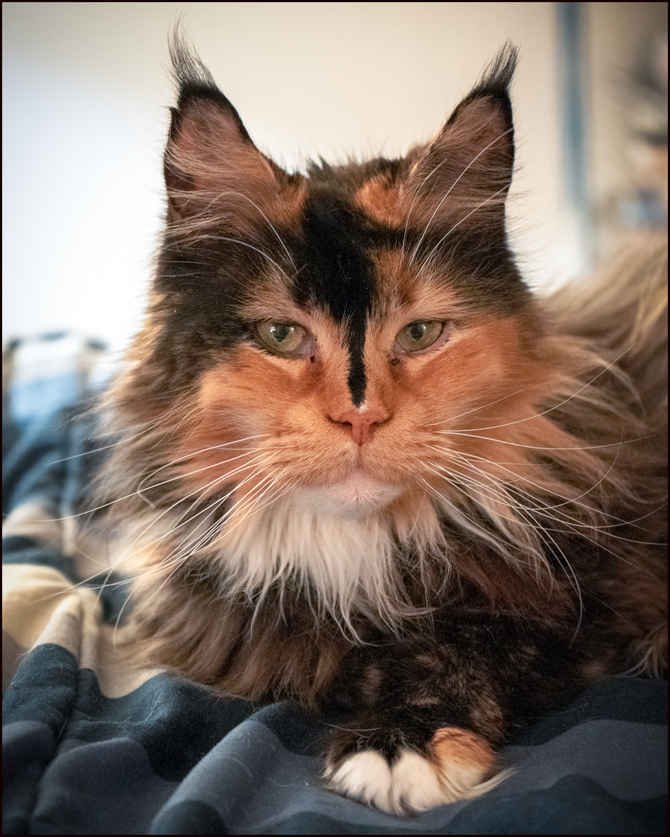 I didn’t know whether or not I wanted to get another cat, but then I saw a post in a Facebook group. It seems that the person posting had once worked with someone who had passed away. She went to the memorial service and spoke to the deceased’s two sisters. It turned out that the deceased had left behind six Maine Coon cats. I’ve always loved Maine Coons and had always wanted to have one and I couldn’t resist. I contacted one of the sisters who invited me to come over, take a look at the cats and pick one that I liked. So off I went. I chose a cat and the sisters told me her name was Sophie, a name I didn’t much care for. I took the pictures and shared them with friends and family. Nobody thought she looked like a Sophie, which as it turned out she wasn’t. The sisters had got their cats mixed up and the one I chose was actually called Ramona, another name I didn’t really like.