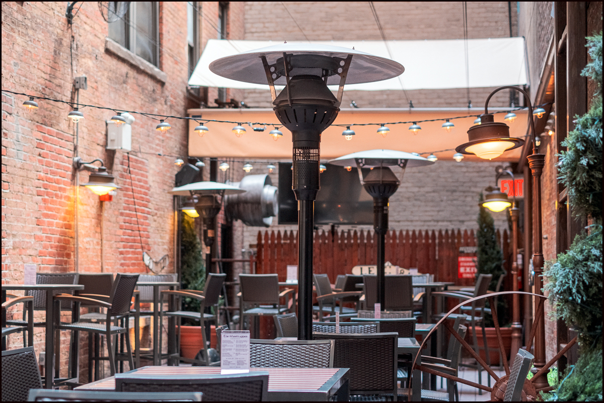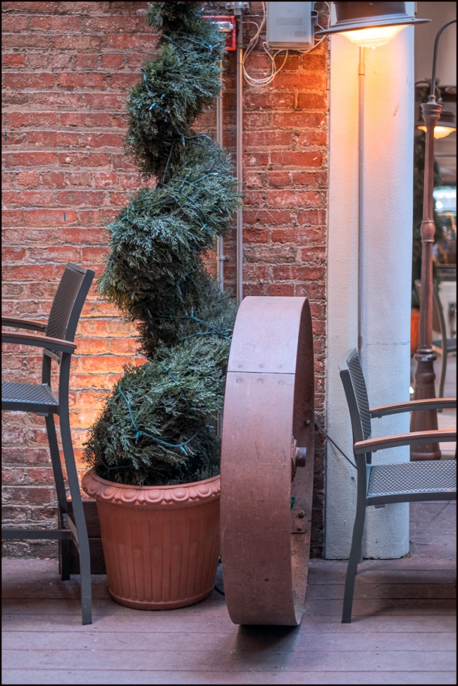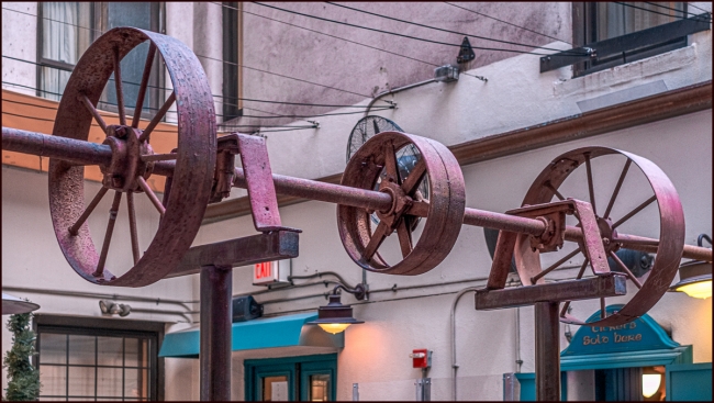 The pub is located in the Fitzpatrick Hotel on 44th Street between Lexington and Third Avenues in NY City. Most of the space has a fairly typical “pub like” feel, but there’s also an area that, strangely is open to the sky. This is where we ate (fairly typical pub fare). All around are large pieces of metal. The pub is near where I used to work so I’ve been there a few times, but it never occurred to me to look up what a ‘Wheeltapper’ actual was.