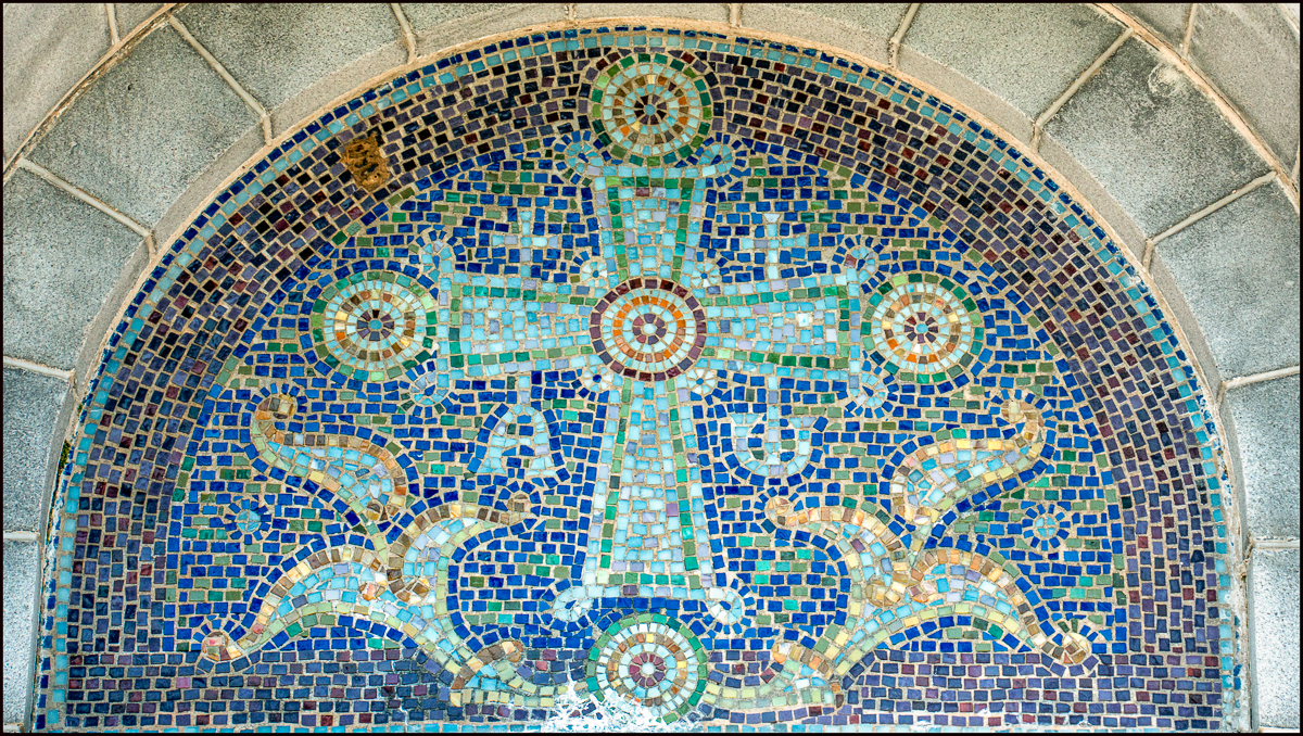 Closer view of the spectacular mosaic over the doorway.