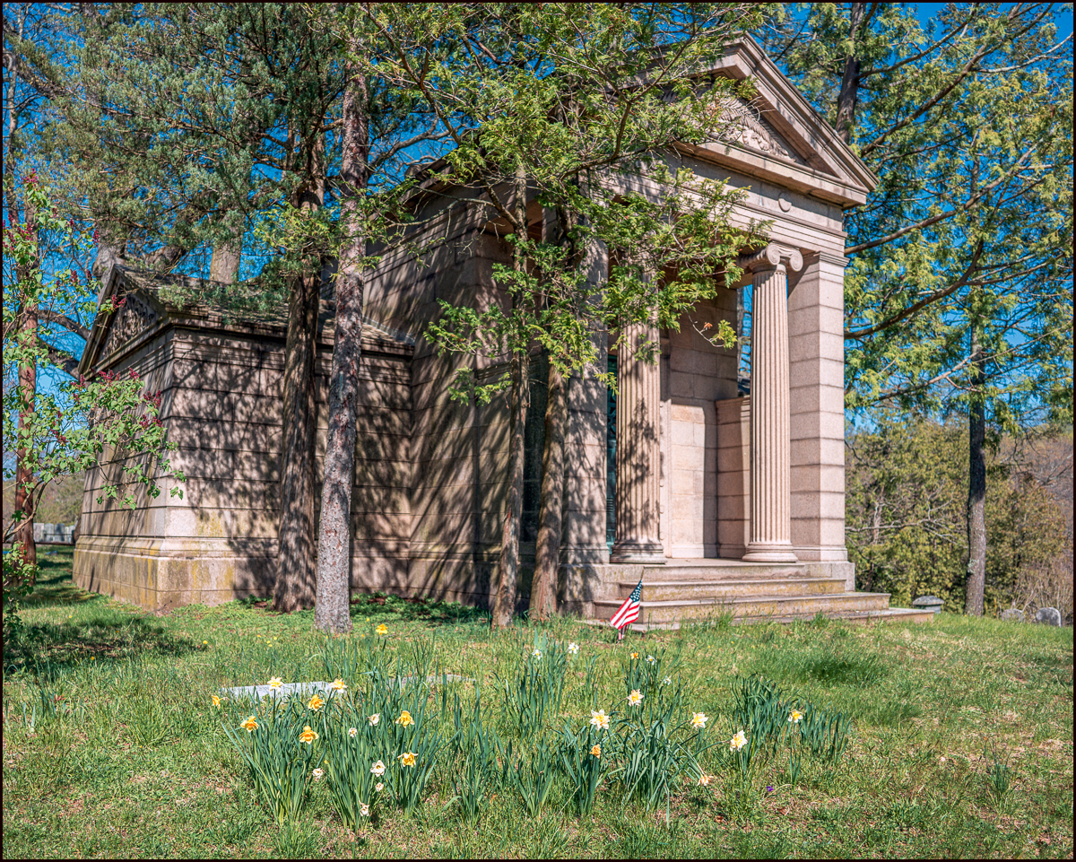 The weather was gorgeous a few days ago so I decided to go for a walk in nearby Sleepy Hollow Cemetery. Although we tend to refer to it as Sleepy Hollow Cemetery it’s actually two adjoining cemeteries. The Old Dutch Burial Ground is the older part. It’s interesting historically, but to me less interesting photographically. The newer part is the Sleepy Hollow Cemetery proper where you find a lot of large monuments and mausoleums.