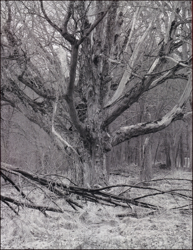 The subject is a single tree in a nearby woodland. I’d already taken a number of pictures of it but on this occasion I decided on the spur of the moment to attempt an exercise that I’d recently read about. This exercise consisted of taking thirty six photographs of a single subject all at once (See: A Photographic Exercise).