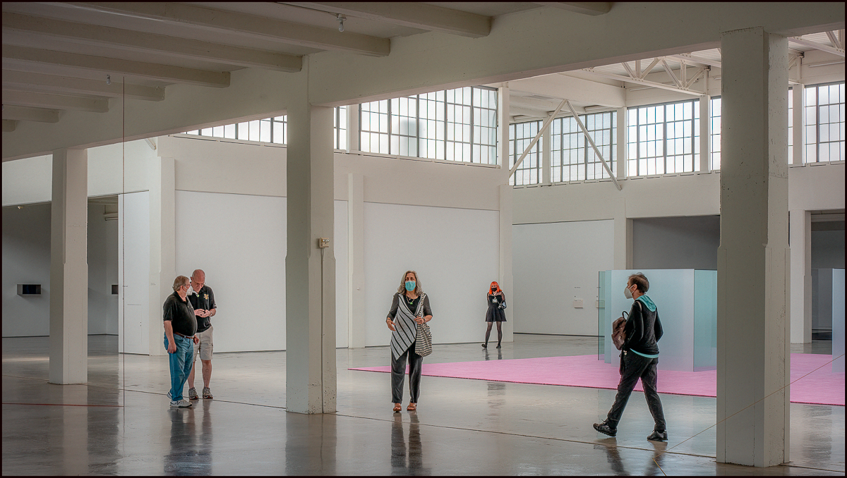 One of the interior spaces, on display the work of Larry Bell.