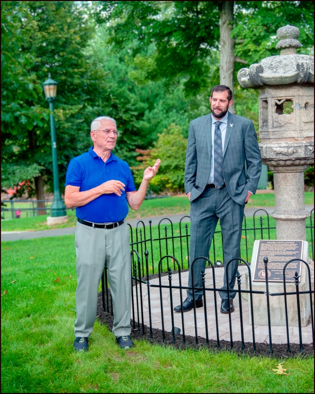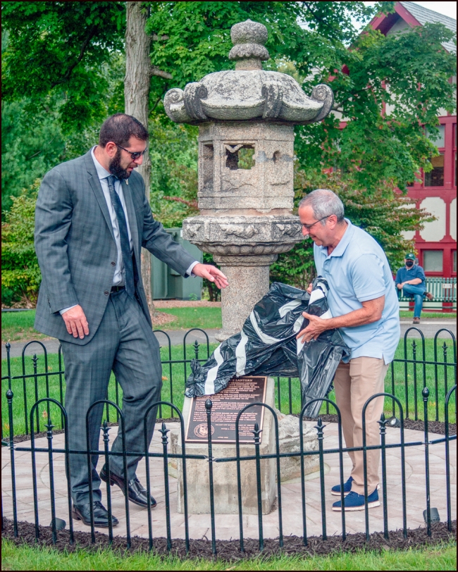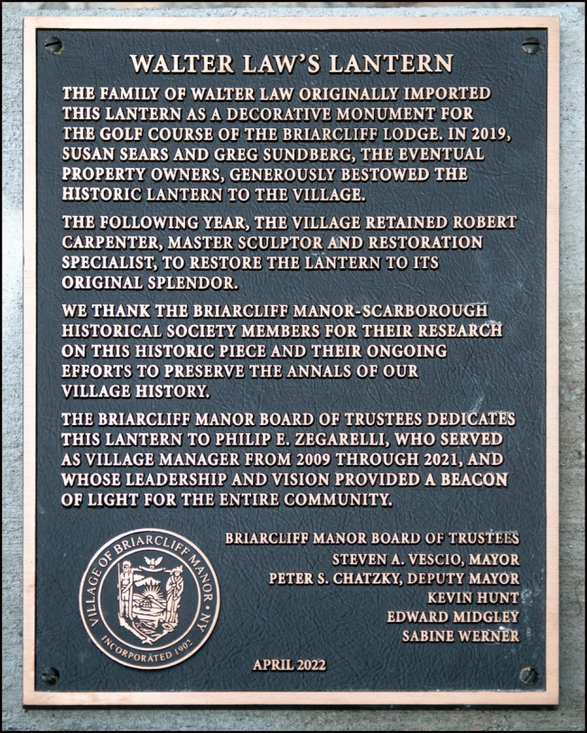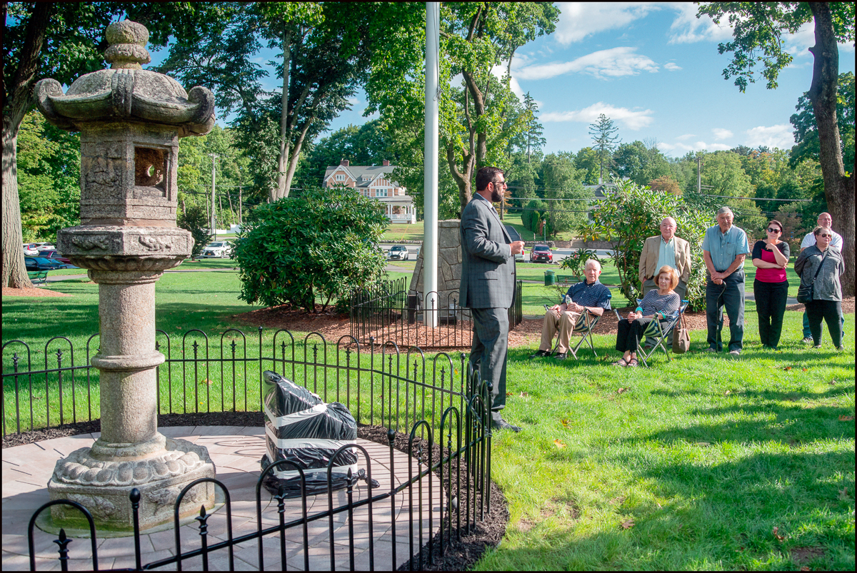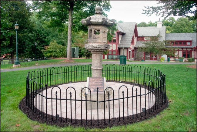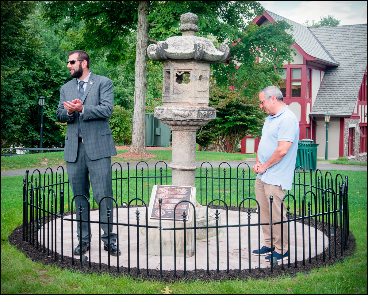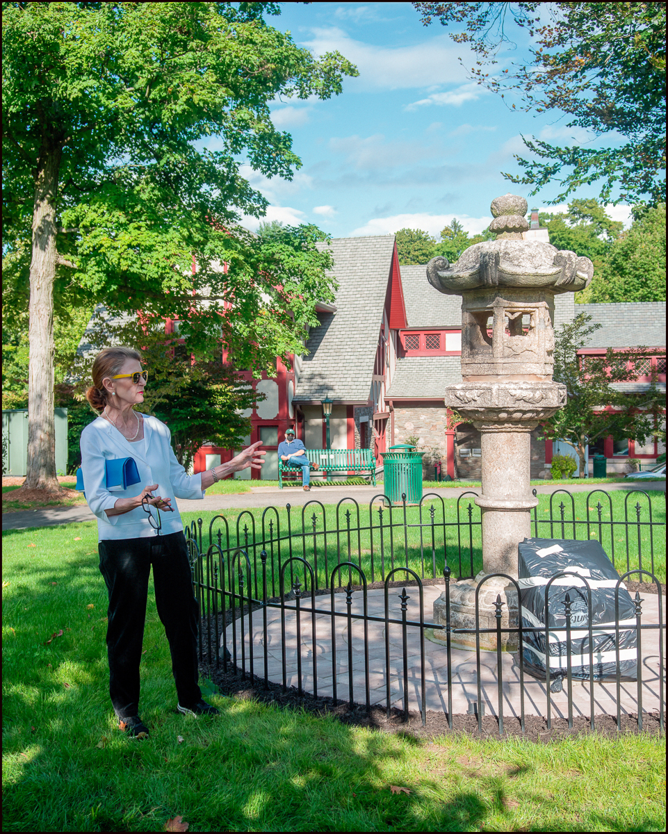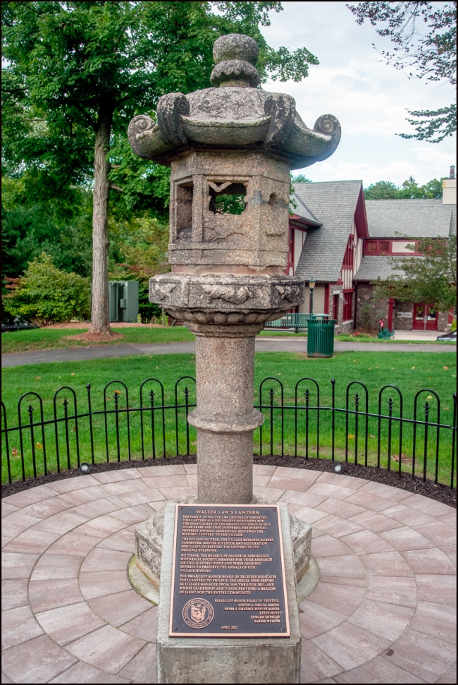 Back in May of this year I posted about my town’s oriental stone lanterns. (See: Around the Neighborhood – Briarcliff Manor’s stone lanterns.). Well, on Tuesday 20 September 2022 the town finally got around to the official ceremony to welcome one of these lanterns to our town park, Law Park: one of the original lanterns from Walter Law’s personal collection. The lantern was given to the town by Susan Sears and Greg Sundberg. It had been sitting on their property for many years. I had a couple of questions for town historian, Kaaren Smith. First, are lanterns Japanese or Chinese (or from somewhere else)? I was told that they were originally Japanese but came via China. How did they get to Briarcliff Manor? According to Kaaren the prevailing opinion is that they were brought by missionaries. However, she had come to realize that this may not be the case. She believes that, based on evidence she has discovered, the lanterns were brought back by members of the Law family who spent some time in China.
