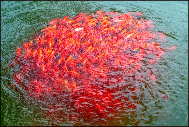 While walking in my local park, Law Memorial Park I noticed this rather impressive school of fish swarming in the pond (Do fish swarm? flock?).