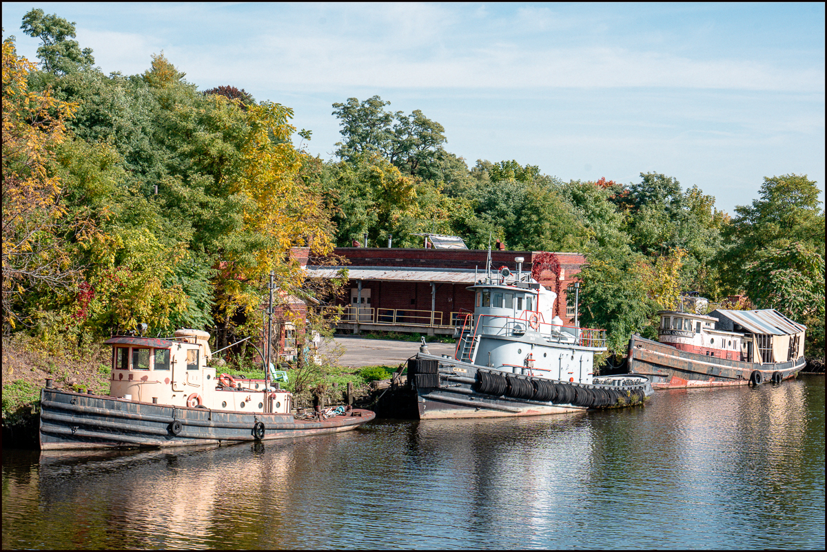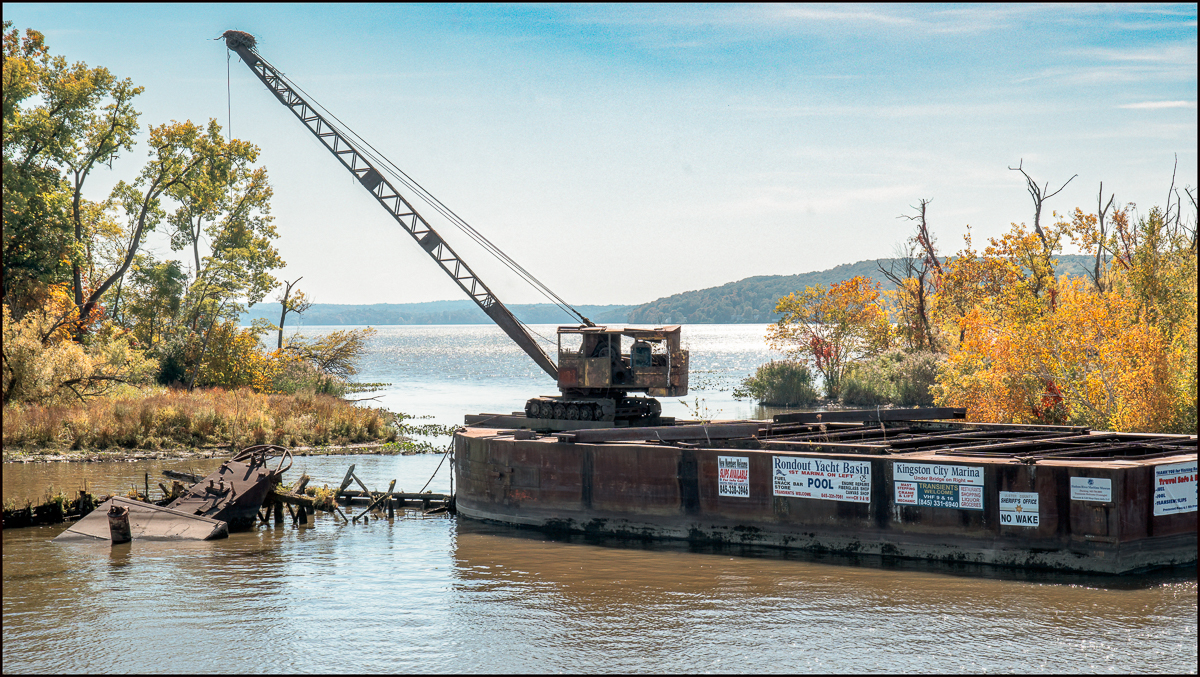 And a crane. Around the crane are the ruins of the Cornell Steamboat Co. barges that sank to the bottom of the creek from disuse in the 1960s. When the Cornell business entered bankruptcy in 1964, the barges anchored for years and eventually sank in place. There are no plans to remove them.
