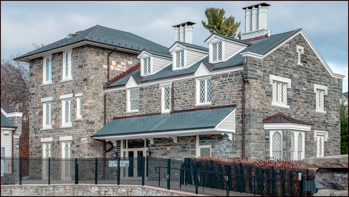 Kane House appears to have been built in two sections: the southern wing was constructed first, and contains many typical Gothic Revival elements, such as the steeply pitched center-gabled roof, the arched entryway over the front door, and diamond-shaped panes in most of the windows. The three-story northern wing, which was built at a later date than the southern portion, contains a hipped roof with a small eyebrow dormer, two elements atypical to Gothic Revival architecture. The house contains 20 rooms and has twelve fireplaces. A small wood-framed addition was also added to the northern wing at an unknown date. Kane House was constructed with hand-cut 24 inch thick granite.Significance: Cultural and Architectural