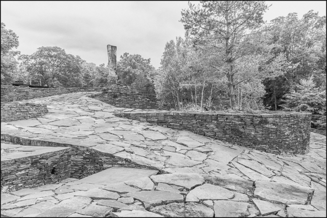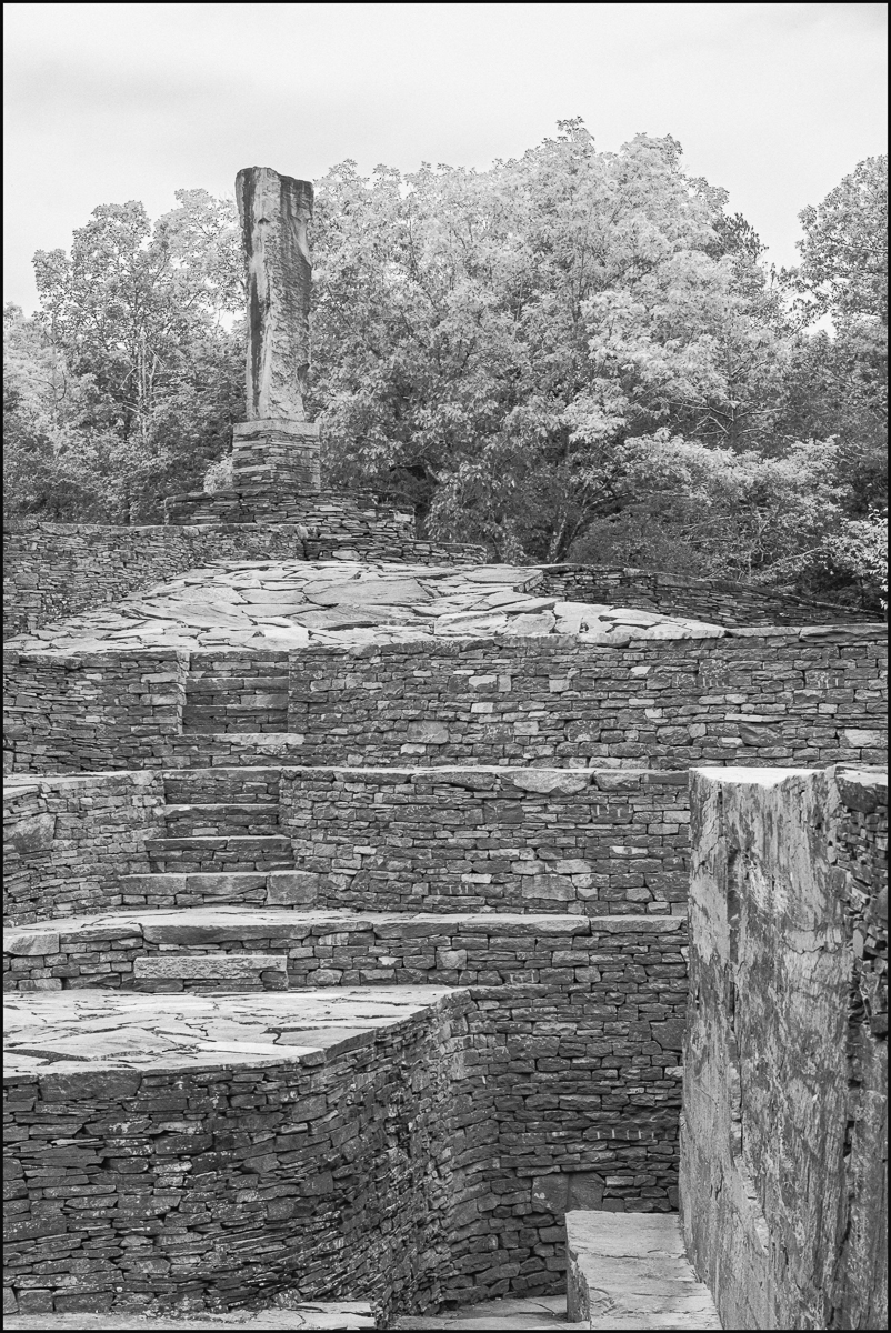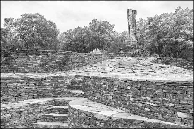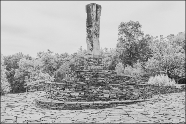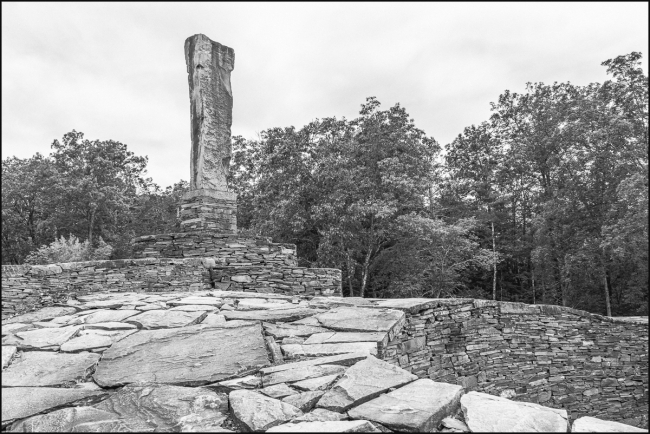 The site is not all that large (about 0.057 km²), and I think we may have missed part of it. It’s dominated by the monolith sculpture, called “Flame”. As you wander around you see it from a variety of different perspectives.