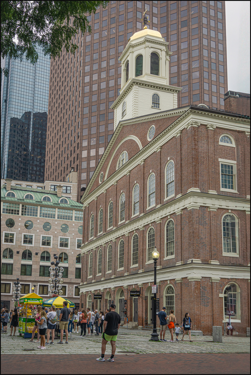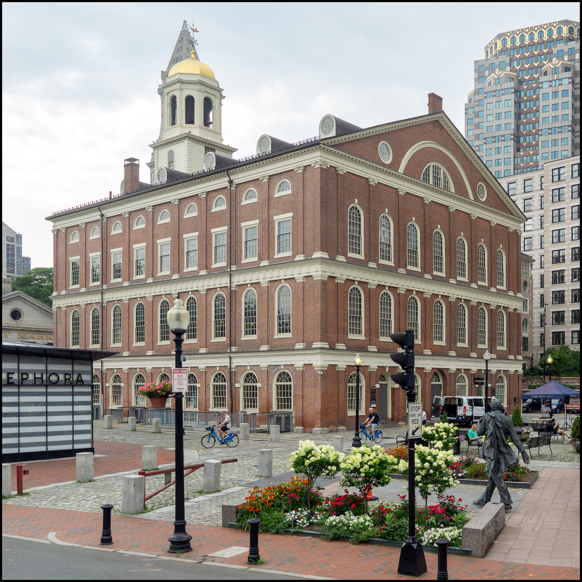 Faneuil Hall is a marketplace and meeting hall located near the waterfront and today’s Government Center. Opened in 1742, it was the site of several speeches by Samuel Adams, James Otis, and others encouraging independence from Great Britain. It is now part of Boston National Historical Park and a well-known stop on the Freedom Trail. It is sometimes referred to as “the Cradle of Liberty”. (Wikipedia)