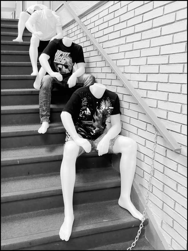My friend needed to go to the Department of Motor Vehicles (DMV) in Peekskill, NY so I decided to go along. While I was waiting for her I came across these rather surreal (and somewhat spooky) mannikins just outside.