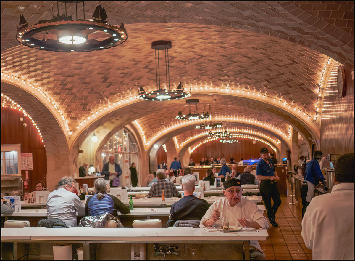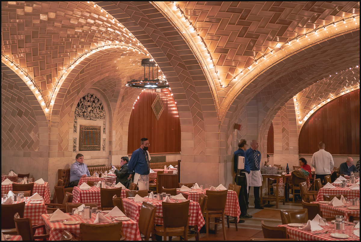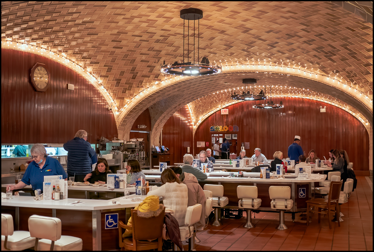 “The restaurant space was first opened as the Grand Central Terminal Restaurant. Although Grand Central Terminal opened on February 2, 1913, its opening was celebrated one day prior, February 1, with a dinner at the restaurant, arranged for Warren and Wetmore along with 100 guests. The restaurant was operated by The Union News Company. It closed briefly for renovations following a 1997 fire. Jerome Brody sold the Oyster Bar to employees in 1999 and died in 2001. Brody chose to sell to staff to preserve the union and employee satisfaction in his transition. As of 2017, all non-union, managerial staff are part of the Employee Stock Ownership Program (ESOP). The initial group of managers bought a near-majority of the company’s stock with a loan between 1999 and 2001. They purchased the remainder between 2004 and 2008. In 2016, the Zagat Survey gave it a food rating of 22/30, “Very Good To Excellent”. The Oyster Bar closed for a majority of 2020 during the COVID-19 pandemic. It briefly reopened for two weeks and closed again when its underground location failed to attract foot traffic. It then resumed its activities back to normal business from 2021 on.” (Wikipedia)