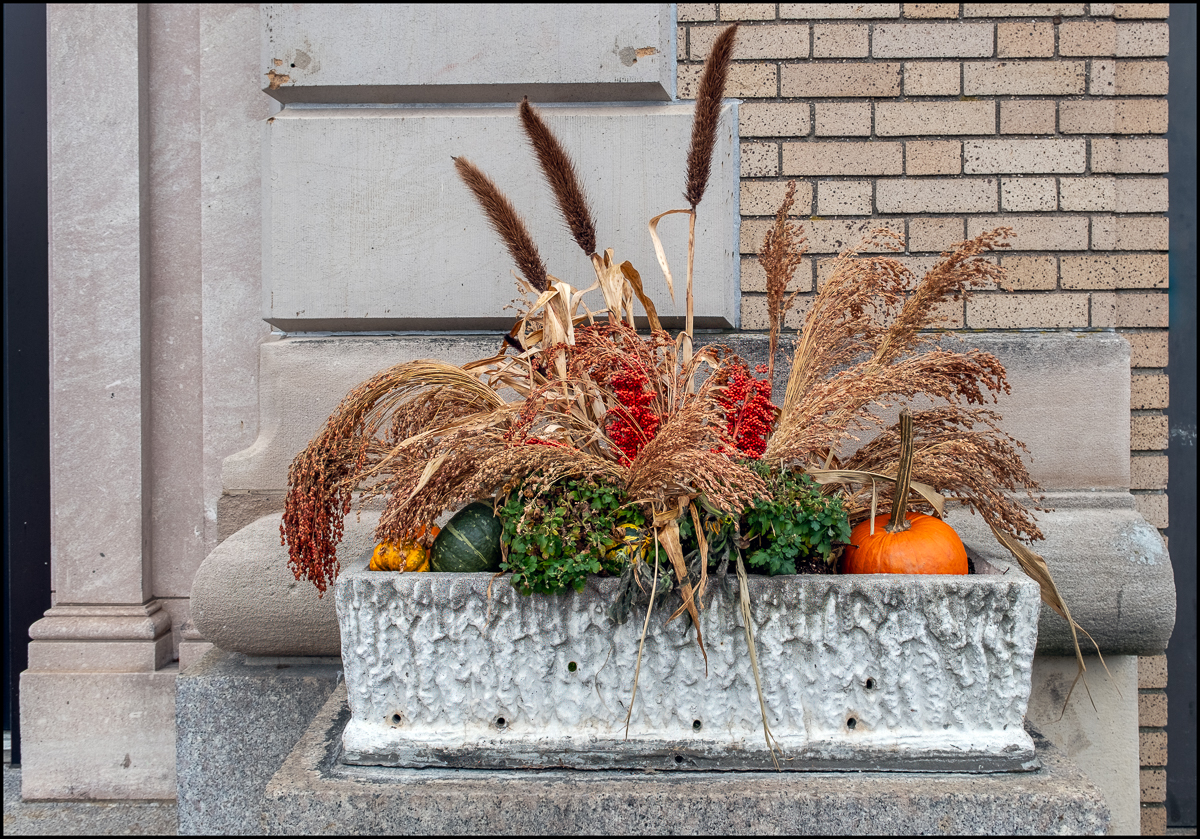 This very colorful arrangement was outside the Village of Pleasantville, NY Offices. It’s certainly very “cheery”.