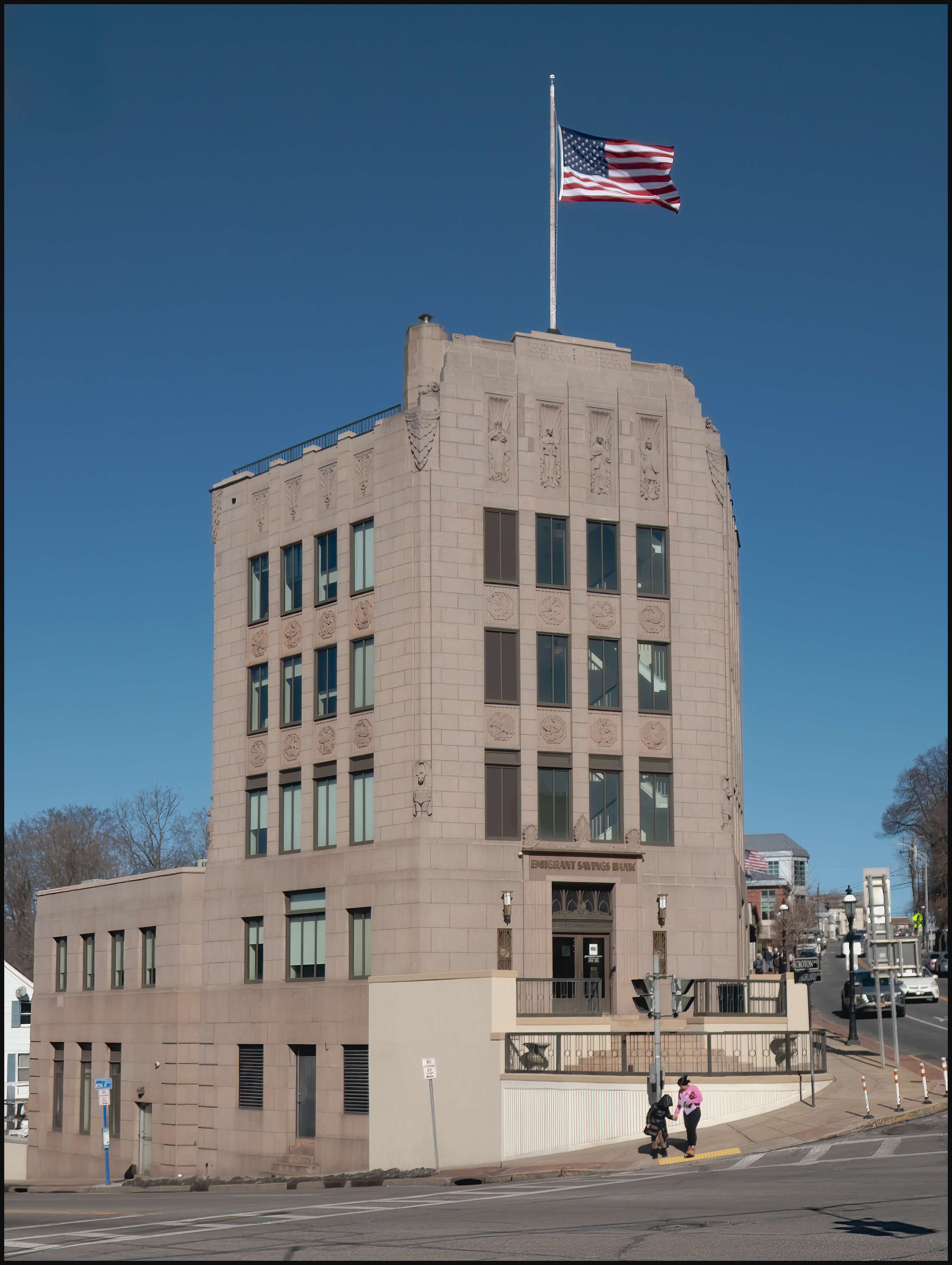 The original First National Bank and Trust Company Building was constructed in 1930 by the bank of the same name, the most prominent commercial bank in Ossining at the time. The company’s previous building at the site (see photo on next page), constructed circa 1850, was demolished to construct a new bank in the popular Art Deco style. The architectural firm Hoggson Brothers of New York City designed the structure, which is singular as the sole Art Deco structure within the Downtown Ossining Historic District. Following the closure of First National Bank and Trust Company, the building hosted a branch of Barclays Bank of New York for a period of time. After a number of years of vacancy, it was purchased by Emigrant Savings Bank, who now own and operate the building.” (Village of Ossining Significant Sites and Structures Guide, Page 217)