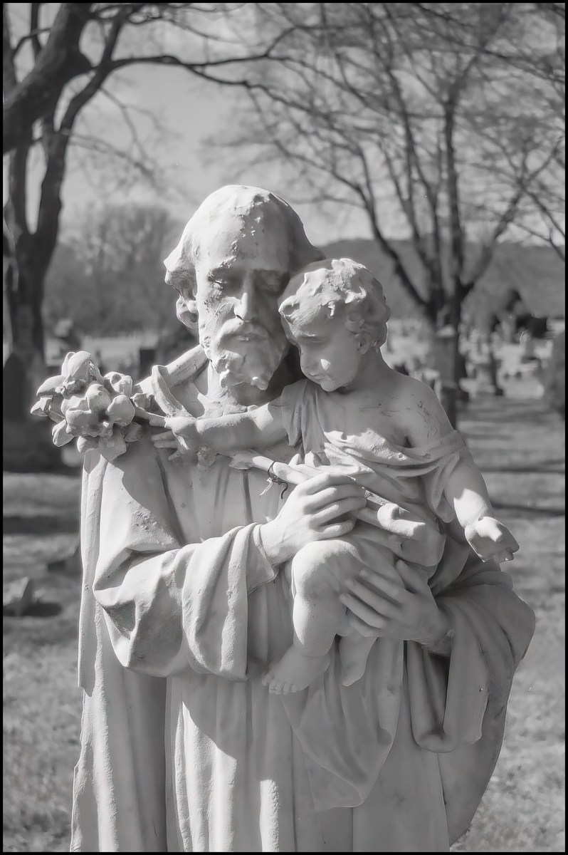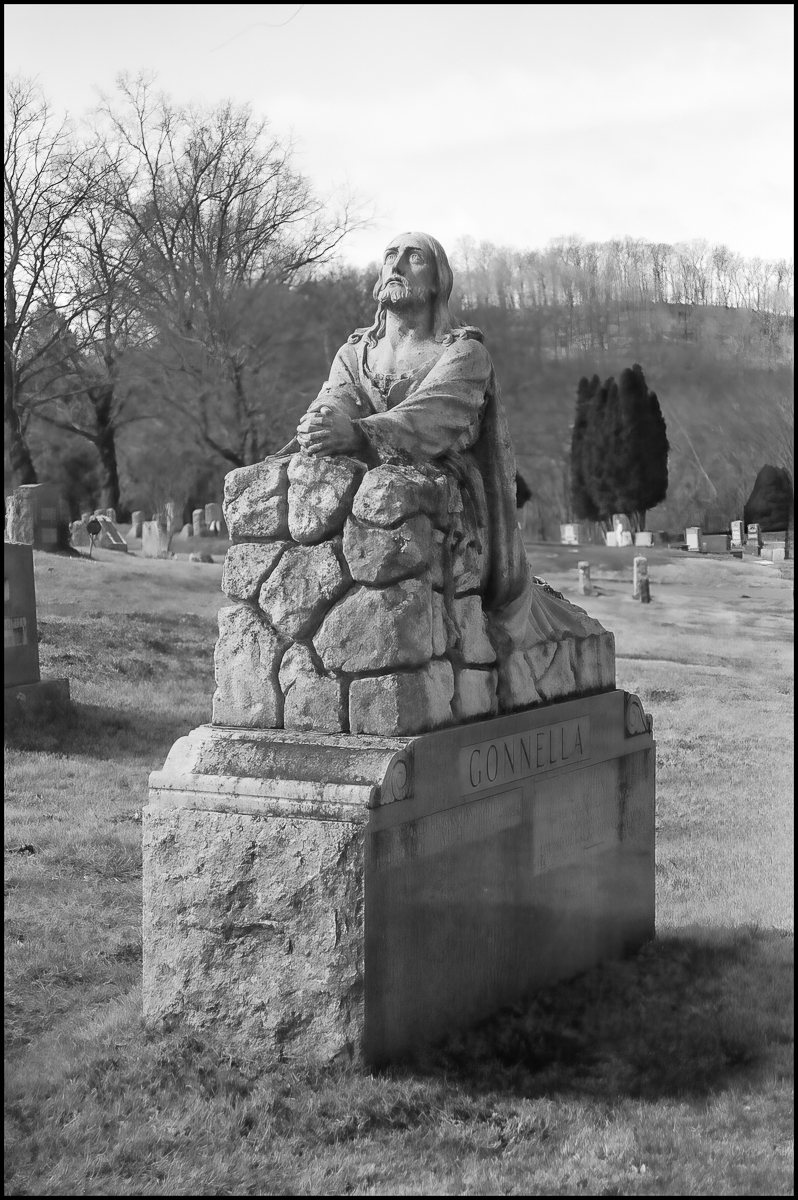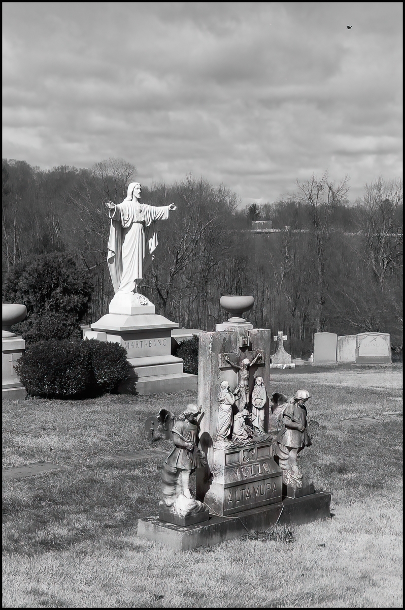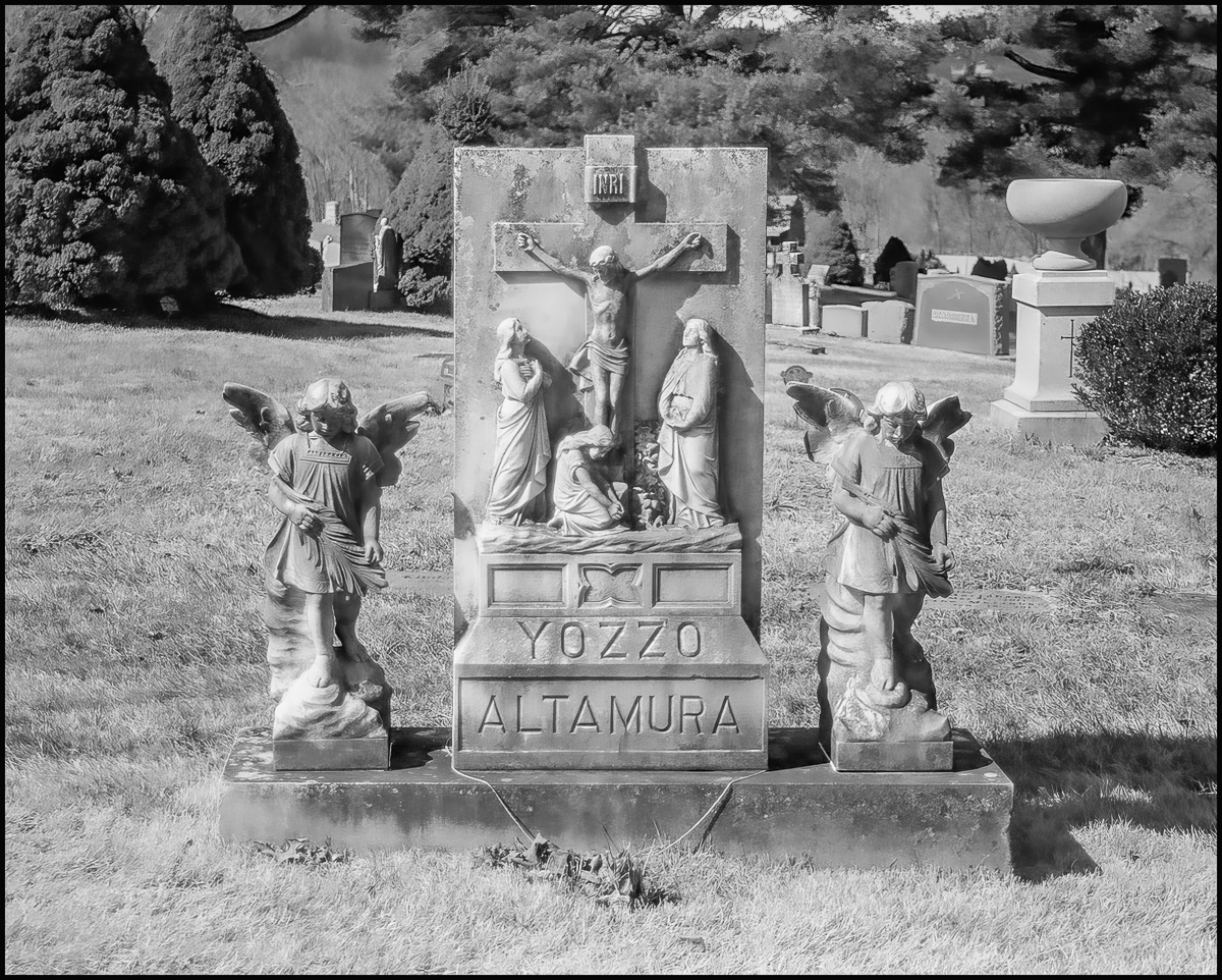 “The picture below shows a monument, which does not have the name of the family on it. It marks the grave of several young people who died in the first half of the 20th century. In addition to containing a Pietà, it also contains an engraving of a motorcycle, perhaps reflecting the interest of one or more of the deceased.” (Patrick Raftery, “The Cemeteries of Westchester County, Volume II“. Westchester Historical Society, 2011.) I particularly liked the wasps/bees/hornet’s nest at the top right of the picture.