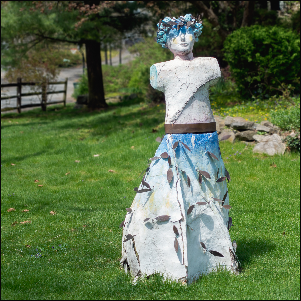 May 12, 2024 by Howard Dale A couple of interesting looking statues seen in a garden while walking along Hemlock Drive in Sleepy Hollow. Taken with a Sony RX100 M3
