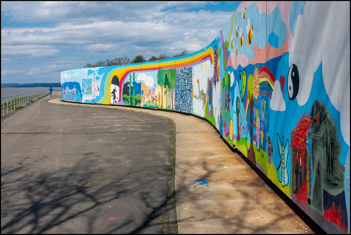 The first phase of the park included paths to provide access along the waterfront from River Street as far north as the historic 1883 Sleepy Hollow lighthouse. A second phase extended the path further north to Kingsland Point Park. These pictures cover the stretch from the lighthouse to Kingsland Point, featuring the mural: The Wishing Wall. According to an article: The Wishing Wall Colors the Sleepy Hollow Community in Westchester Magazine.