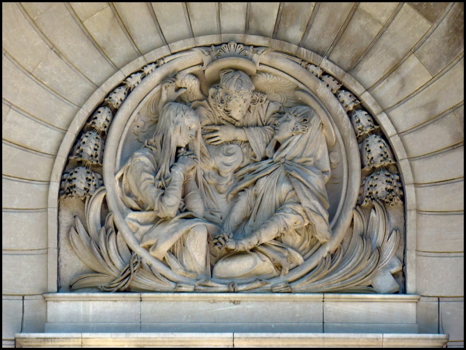 It was built of pink granite rubble with limestone trim, with a steeple supported by flying buttresses. The interior has mosaic tile floors, fluted pilasters with gilded capitals, a coffered ceiling made of redwood, and stained-glass windows. The church’s 1,498-pipe organ was constructed around 1894; it was the first all-electric action organ in the world. The 3-acre (1.2 ha) church property also contains the church’s carriage house, used for offices, and the parish house, designed by Augustus D. Shepard and completed in 1908.