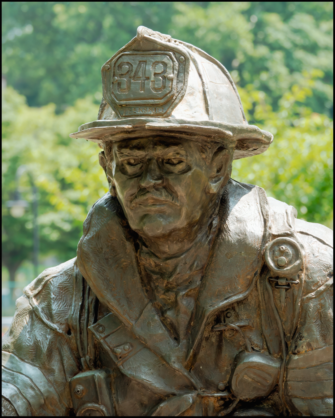 The site’s program and design were developed by the memorial’s leadership group in cooperation with The Verdin Company of Cincinnati, Ohio. The memorial’s centerpiece, a bronze statue of a firefighter, behind a stoic gaze and on one knee, before Oitice’s remaindered, fire-fighting gear, was created by artist Andrea Grimsley under an arrangement with Verdin. Combined with the site as well is a steel beam from the WTC, courtesy of the Port Authority of NY and NJ.
